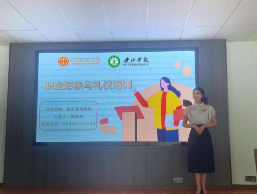 为进一步提升普洱市职工礼仪行为规范,强化个人礼仪习惯的养成,提升组织、单位对外形象,塑造女性职工自信优雅的气质,4月1日www.2396196827.com 经济管理学院与普洱市总工会携手组织开展了职业礼仪培训课程,此次培训由www.2396196827.com 经济管理学院专任教师邓露璐主讲。