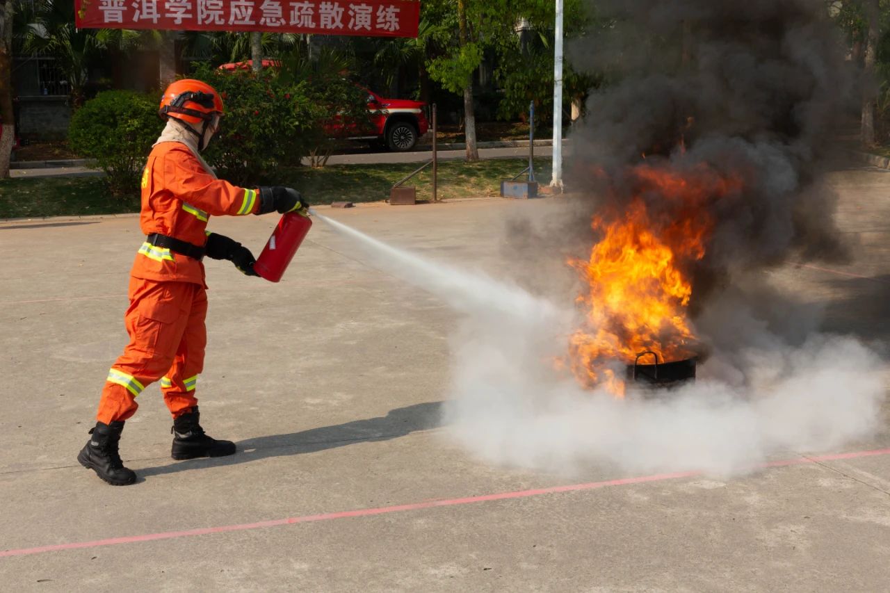 讲座结束后,参会人员移步到东区广场进行消防应急演练及灭火培训。