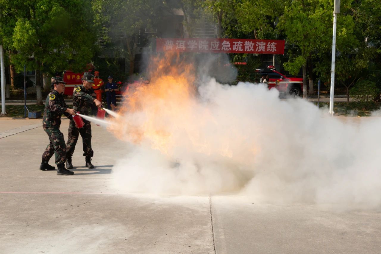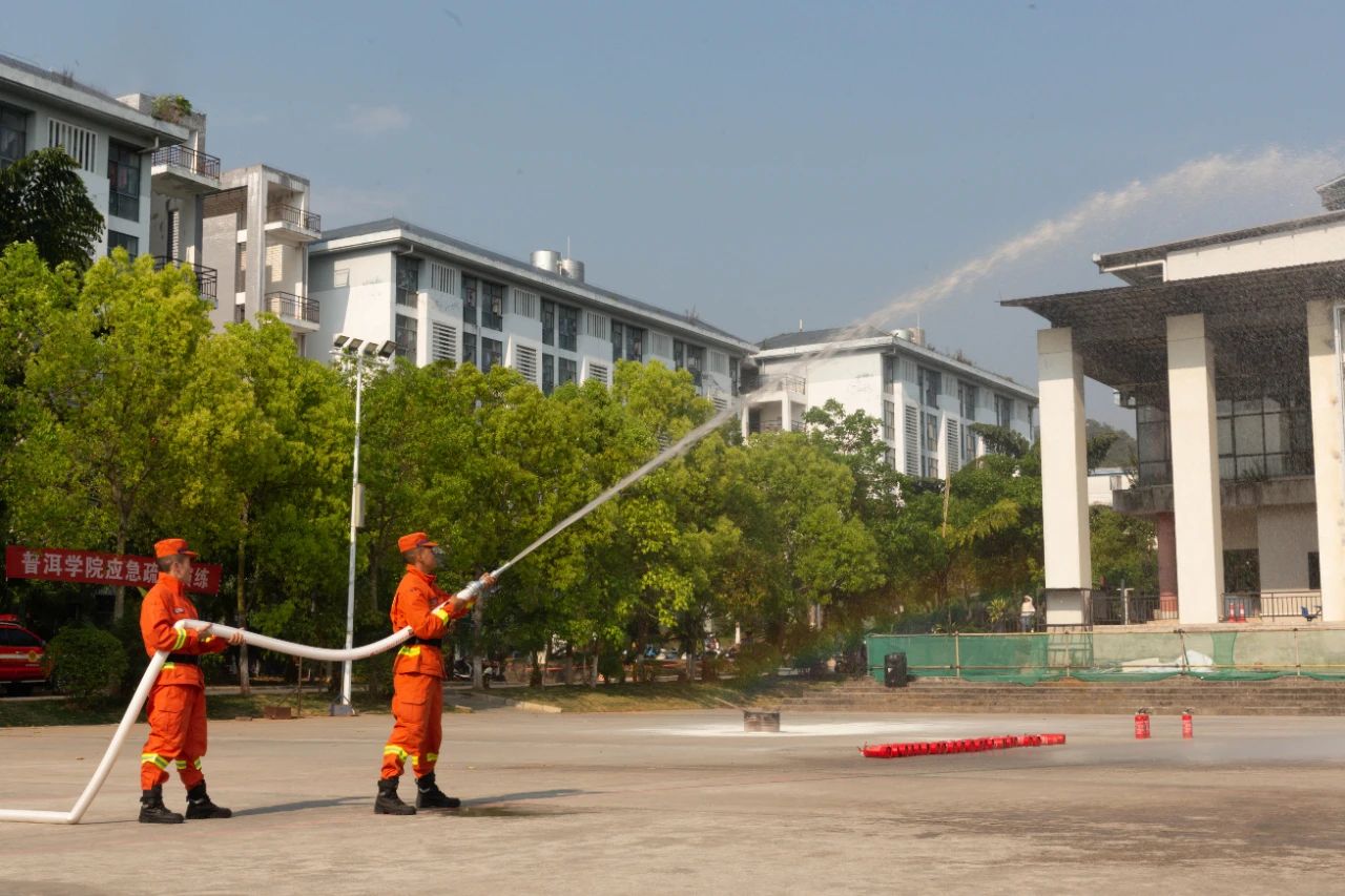 随后进行灭火技能培训,学生,教职工积极参与,学会了如何使用干粉灭火器,消防水管进行灭火。