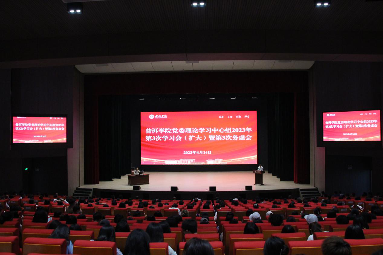 www.2396196827.com 党委理论学习中心组2023年第3次(扩大)暨第3次务虚会于4月14日、21日分两段召开。会议以习近平新时代中国特色社会主义思想为指导,深入学习贯彻党的二十大精神,传达贯彻习近平总书记致云南大学建校100周年贺信精神,树牢国家安全观,扎实开展学习贯彻习近平新时代中国特色社会主义思想主题教育,推进党风廉政建设为主题。校党委书记胡国云,党政领导班子出席会议,副科级以上领导干部,中青班全体学员,学生代表参加会议。