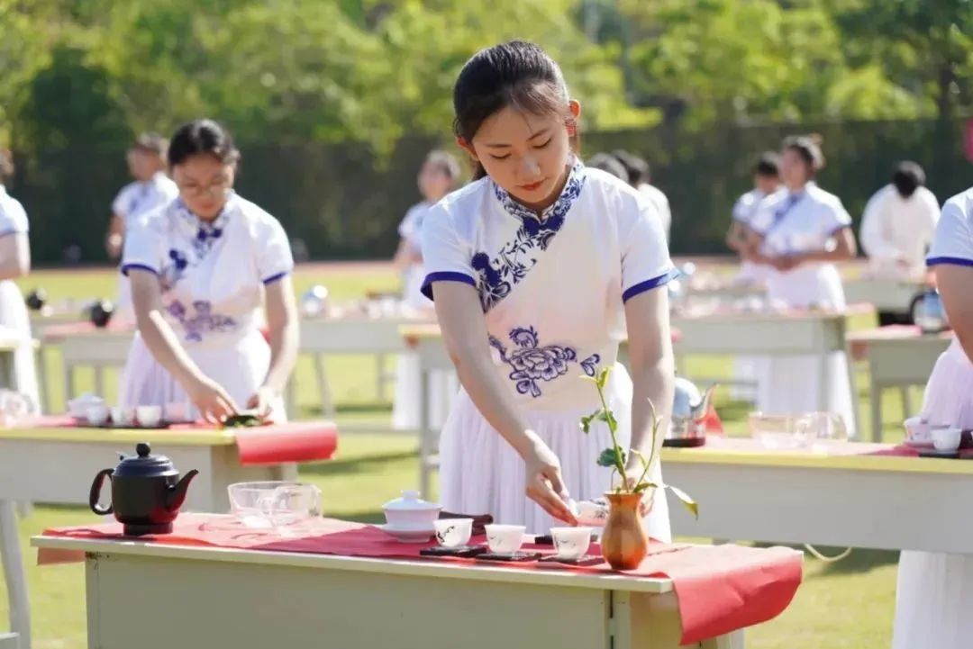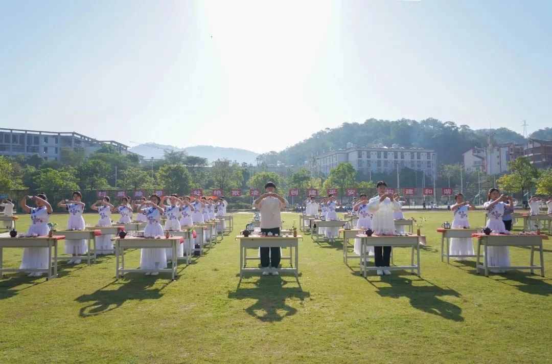 活动中,我校与云南农业大学热带作物学院、滇西应用技术大学普洱茶学院共100位茶青年学子,100个茶席,组合成“521”三个数字矩阵,百人同时同步冲泡普洱茶,满上一杯茶汤,同步举杯,同唱一首青春的赞歌,以青春的方式,庆祝“521”国际茶日。