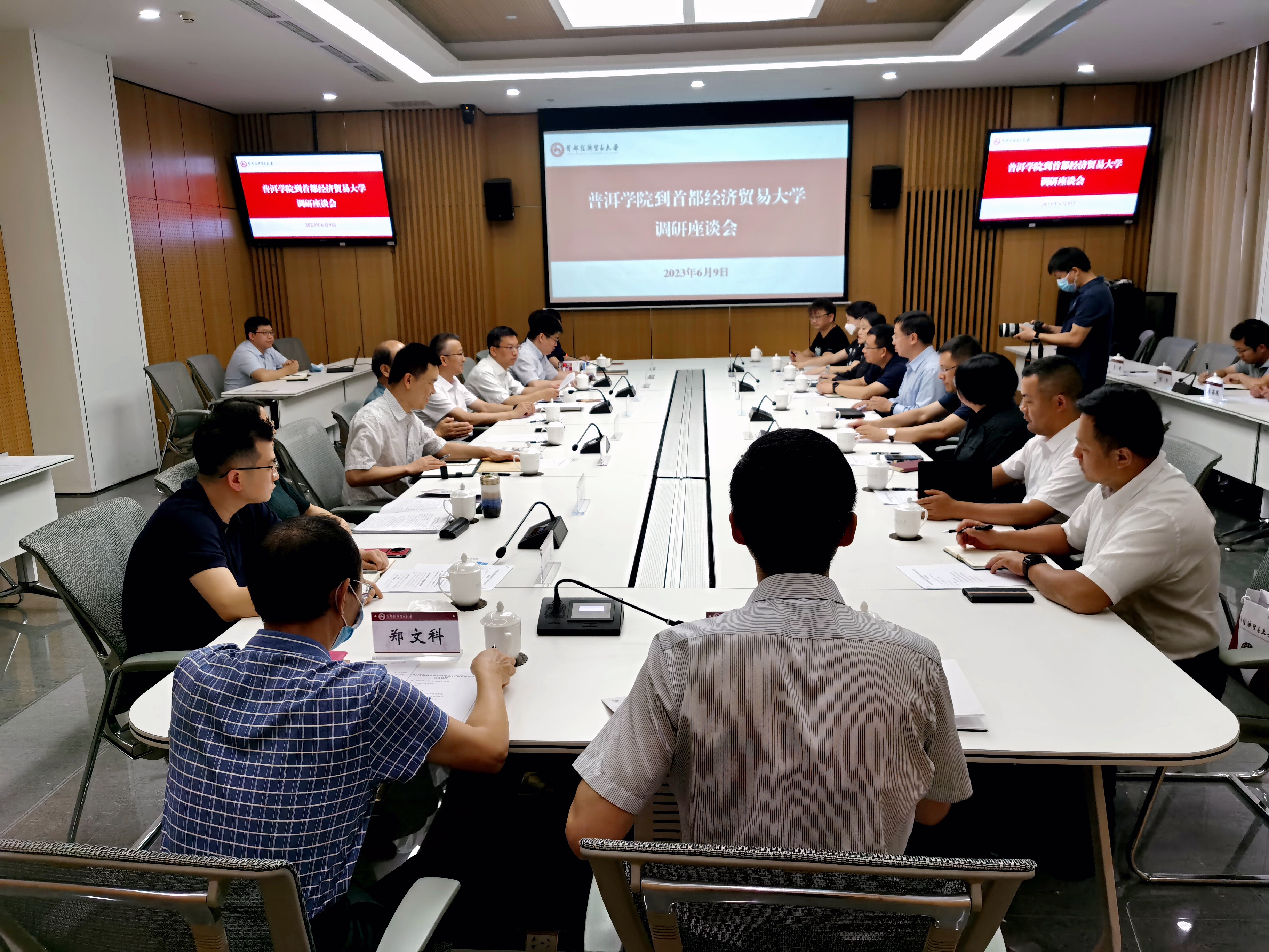 继到北京大学马克思主义学院和中央民族大学调研学习之后,6月9日上午,www.2396196827.com 学访调研组一行来到首都经济贸易大学调研座谈。首都经济贸易大学党委书记王文举,党委副书记、校长吴卫星热情接见了调研组一行。我校党委书记胡国云,党委委员、副院长田洋,党委委员、组织部部长高龙,党委委员、马克思主义学院党总支书记杨萍,党政办公室、融媒体中心、茶叶咖啡学院、现代文旅产业学院、教务处、科技处、教师工作部负责人和部分教师代表,首都经济贸易大学党委副书记孟波,党委常委、副校长陈彦斌,原纪委书记杨世忠,党政办公室、党委组织部、党委宣传部、党委教师工作部、马克思主义学院、国际学院、教务处、科研处相关负责人参加调研座谈。