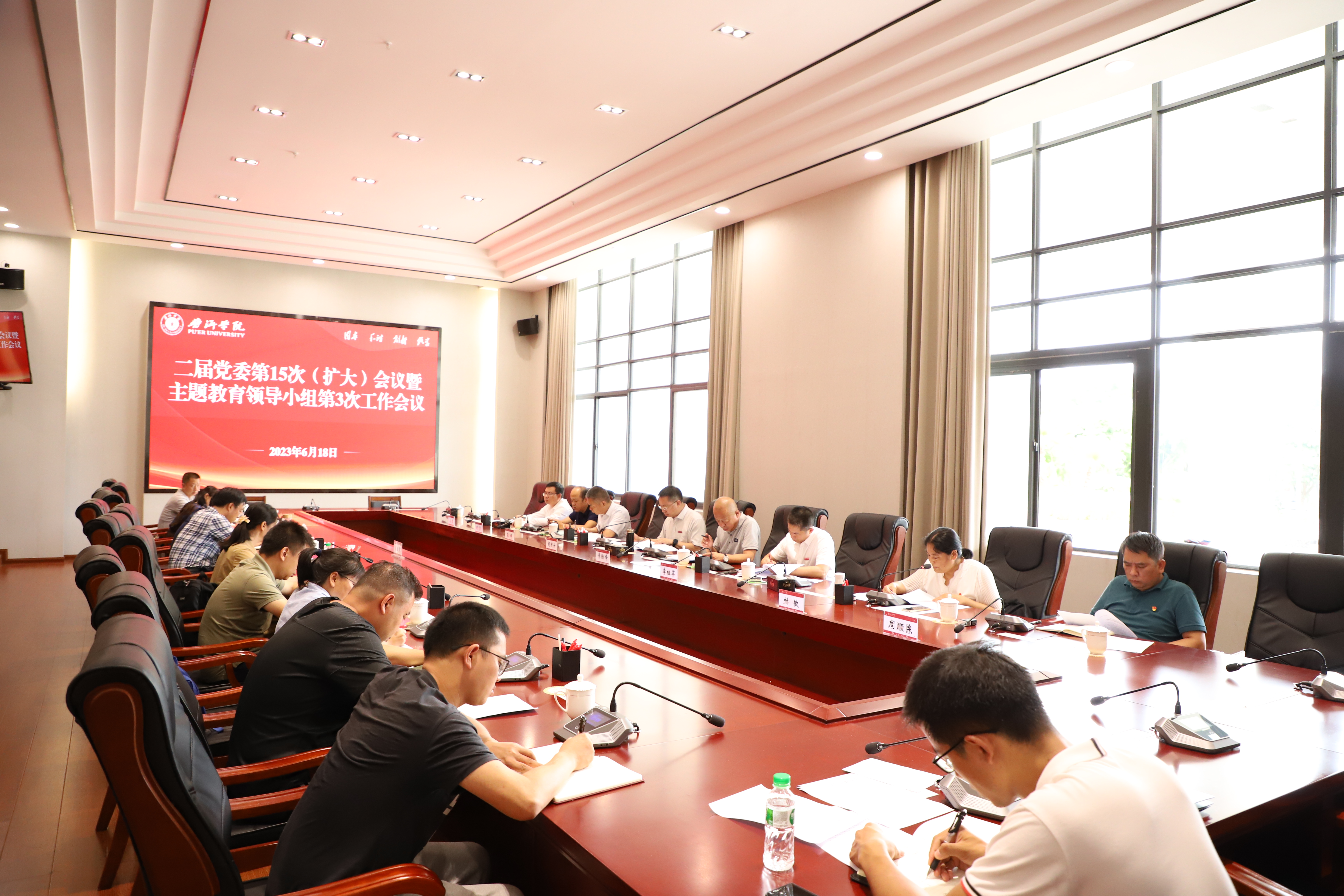 6月18日,党委书记、党委主题教育领导小组组长胡国云主持召开二届党委第15次(扩大)会议暨主题教育领导小组第3次工作会议。他强调,要深入学习贯彻习近平总书记关于主题教育的重要讲话和重要指示批示精神,坚持理论学习、调查研究、推动发展、检视整改一体推进,以更高标准、更实举措抓好工作落实,推动我校主题教育走深走实。
