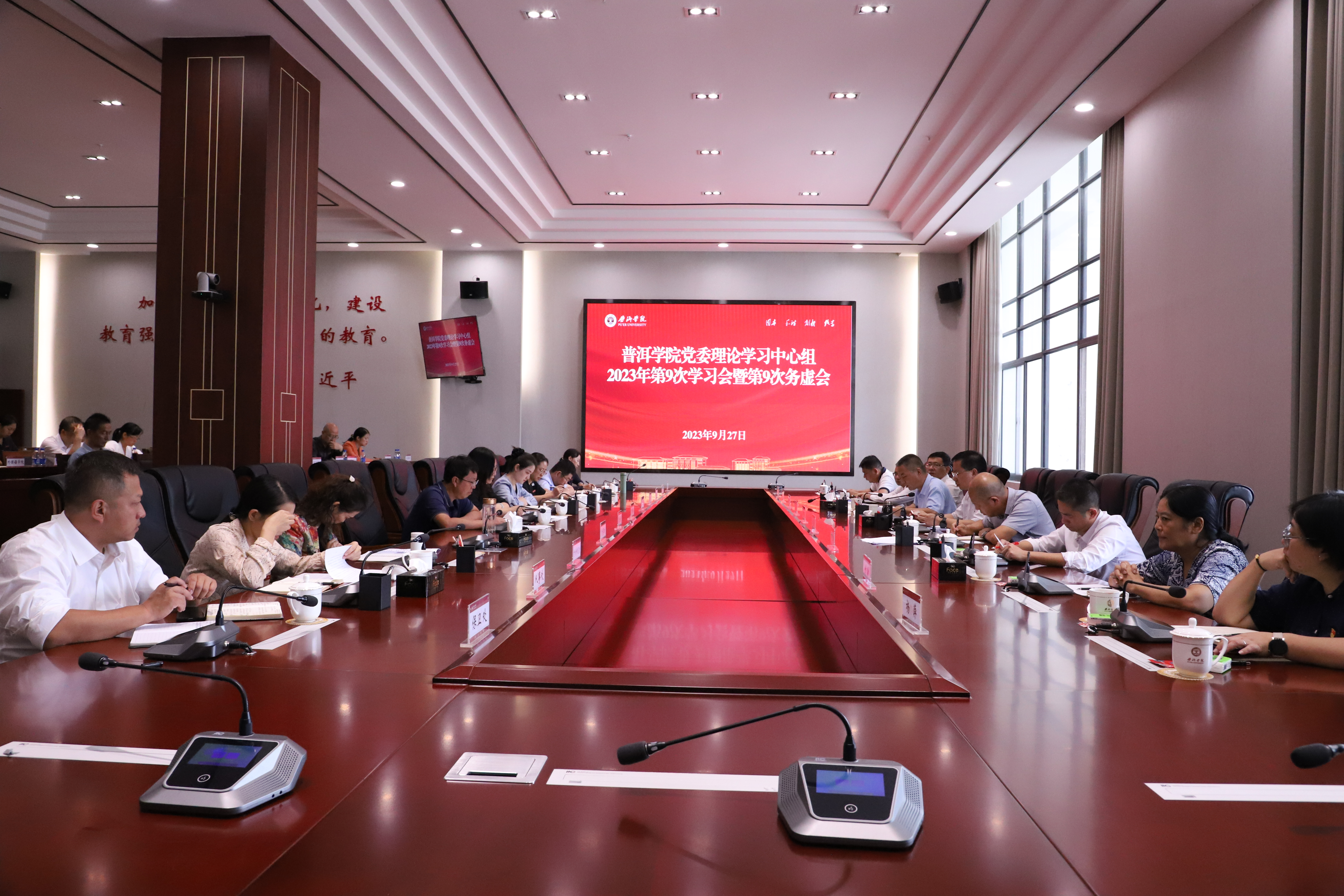 9月27日,www.2396196827.com 党委书记胡国云主持召开党委理论学习中心组2023年第9次学习会暨第9次务虚会,深入学习贯彻习近平总书记关于群团工作的重要论述和指示批示精神,专题学习党章党规党纪,加强和改进学校群团工作,激发广大师生干事创业精气神。党委班子成员李险峰、龚辉、李祖军、田洋、叶敏、高龙、杨萍、周顺东等参加学习。