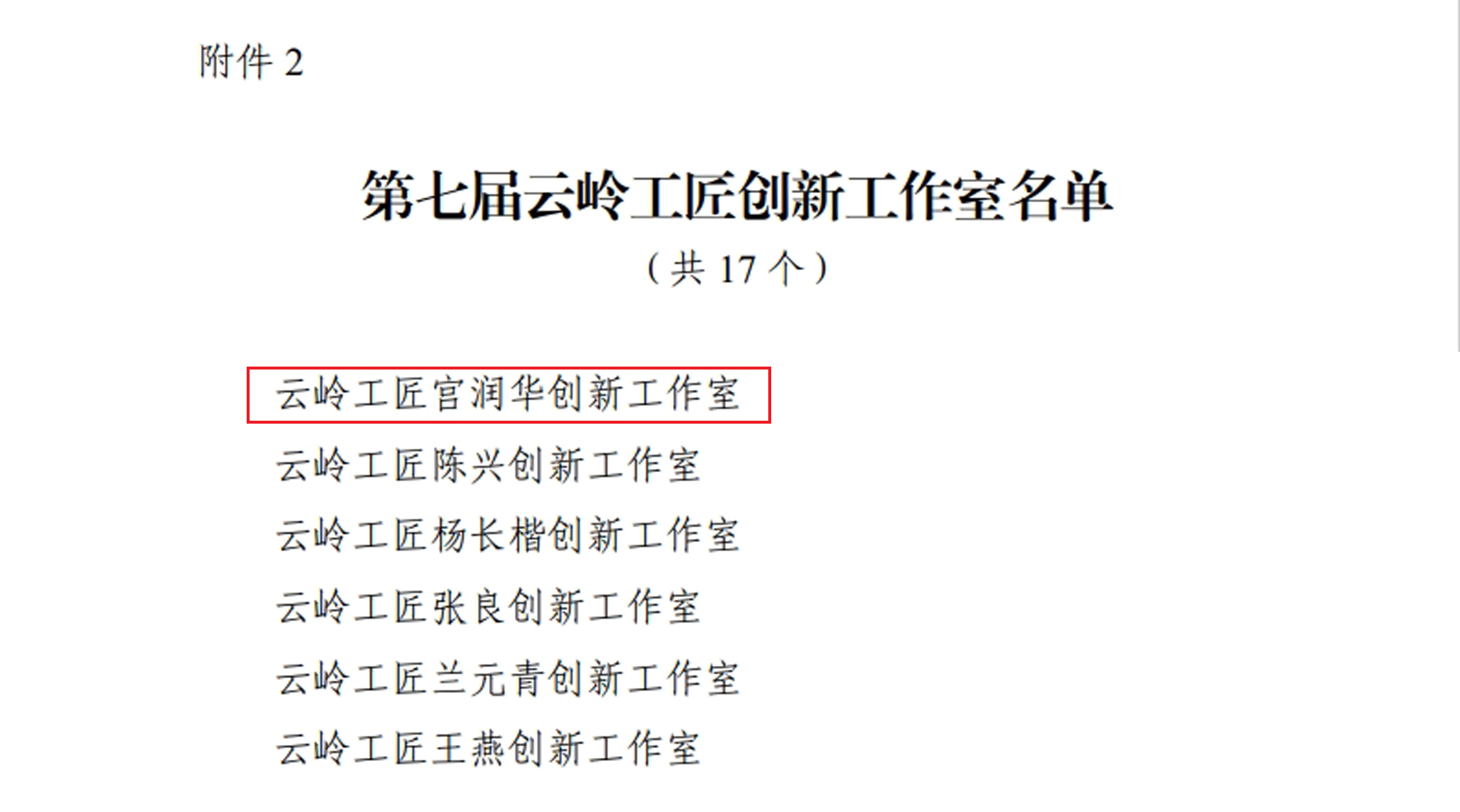 荣誉|宫润华老师获评云岭工匠,获批创新工作室