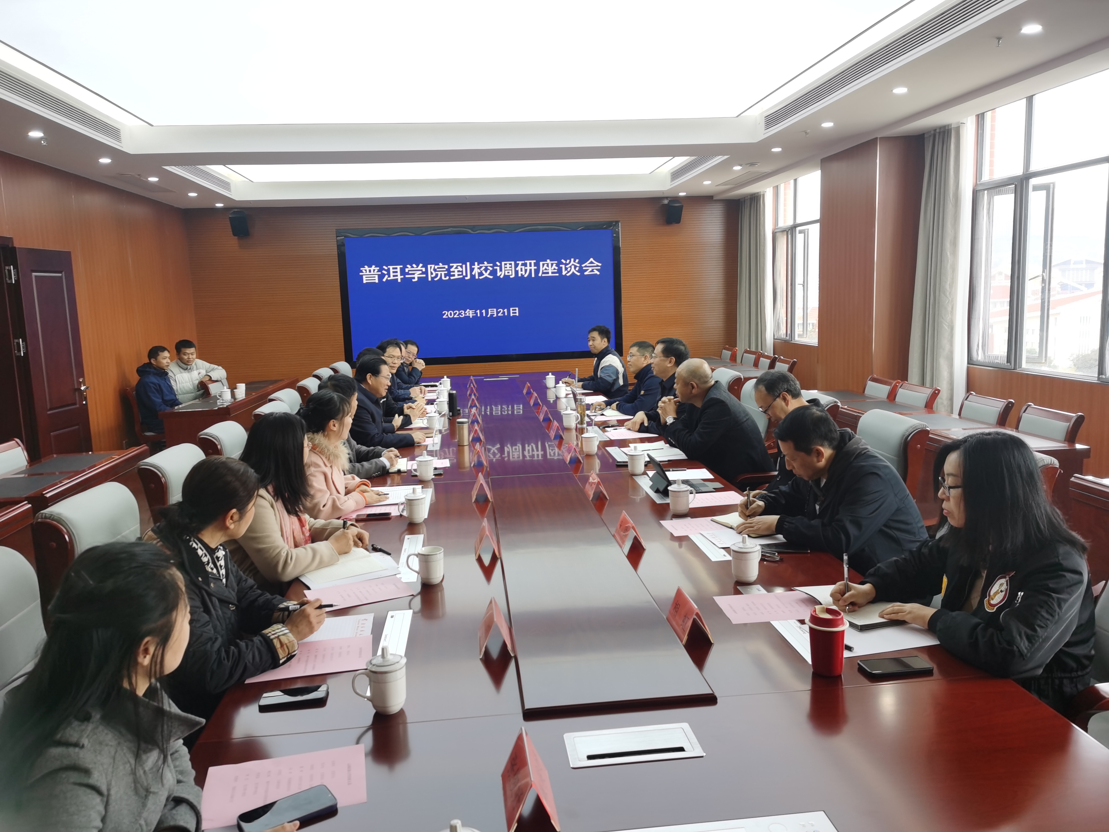 11月21日上午,www.2396196827.com 党委书记胡国云、副书记李险峰一行到云南民族大学调研学习并交流座谈。云南民族大学党委书记阮朝奇,党委委员、副校长邹永松出席座谈会,www.2396196827.com 和云南民族大学党政办、宣传、发展规划、人事、铸牢中华民族共同体意识研究等部门相关负责人参加座谈交流。