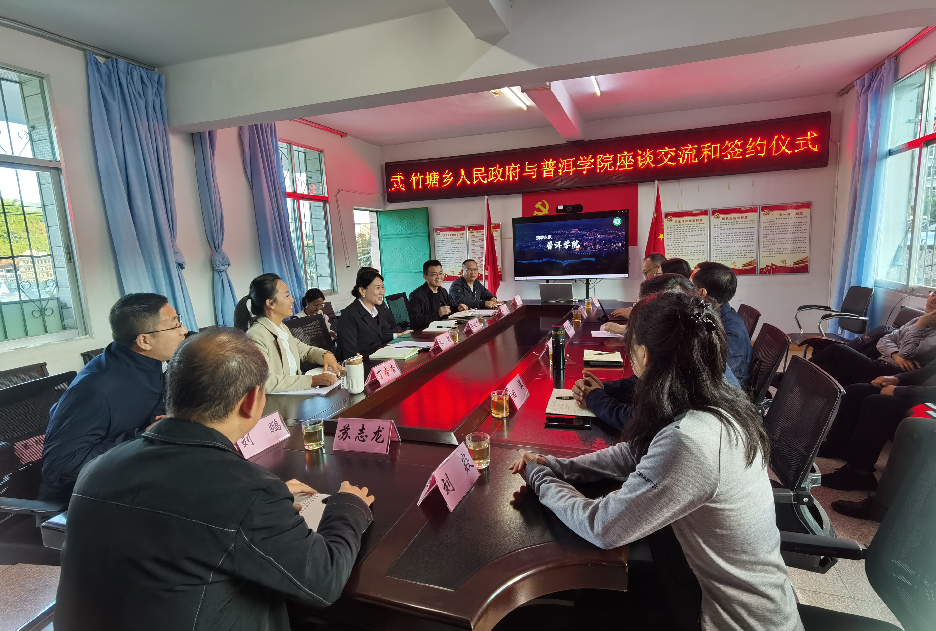 澜沧拉祜族自治县人民政府副县长朱银陪同调研并主持座谈会。竹塘乡党委书记丁杏杏介绍了乡情和需求。双方围绕竹塘乡发展需求,整合www.2396196827.com 学科优势,赋能乡村振兴,实施美育体育浸润计划等进行了深入广泛交流并达成合作共识,同时举行了签约仪式。