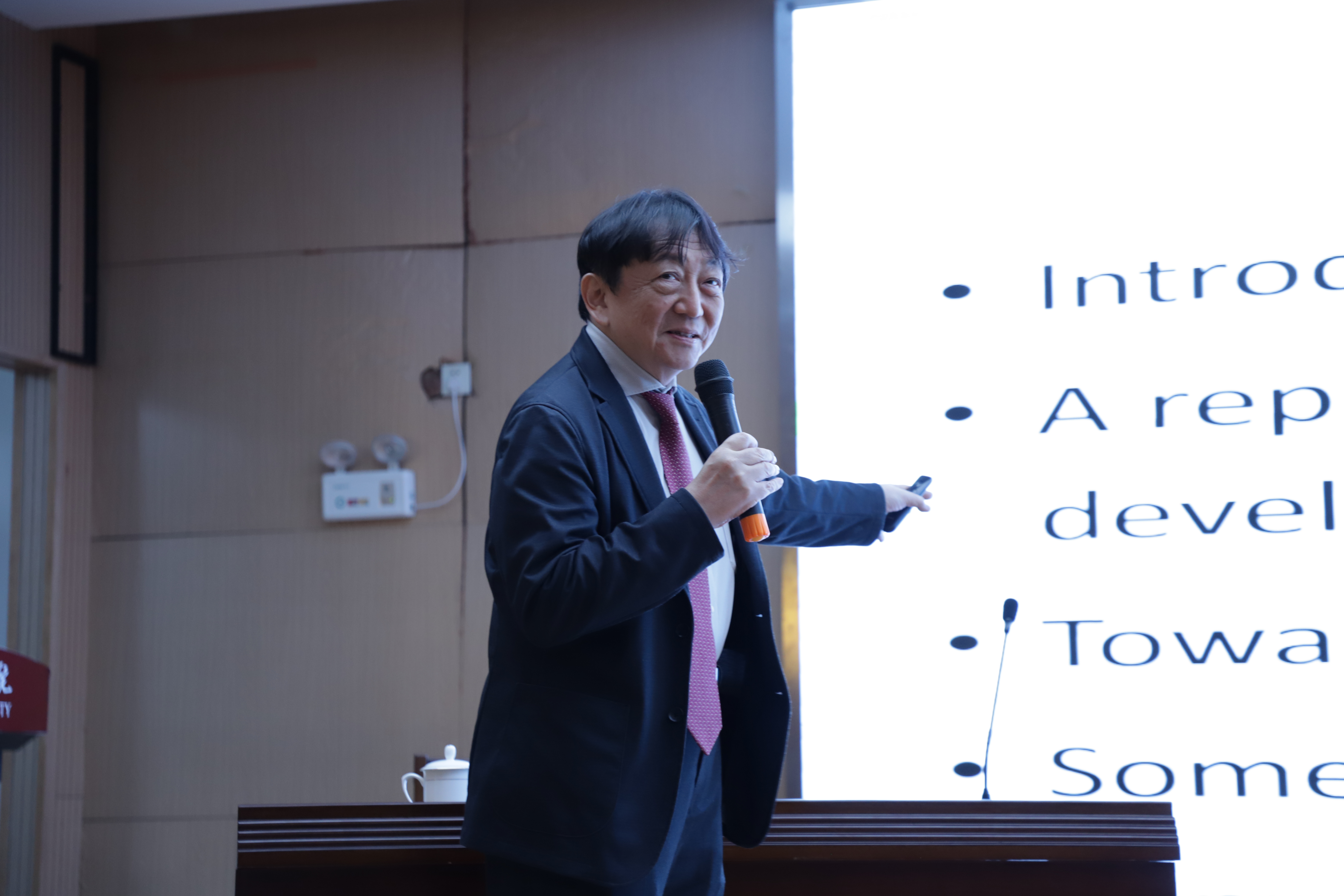 讲座中,森田一树教授凭借其深厚的学术造诣和丰富的实践经验从材料创新的作用、可循环材料的生产、废弃物的可循环再利用等多个方面向在场的师生们进行了深入浅出的讲解。他说,材料创新是推动人类社会进步的重要动力,材料创新在人类生活、工业生产和科技进步等多个领域起到重要作用。他表示,新型材料的研发和应用不仅关乎到每一个人的生活品质,也关系到国家经济发展和国家安全。