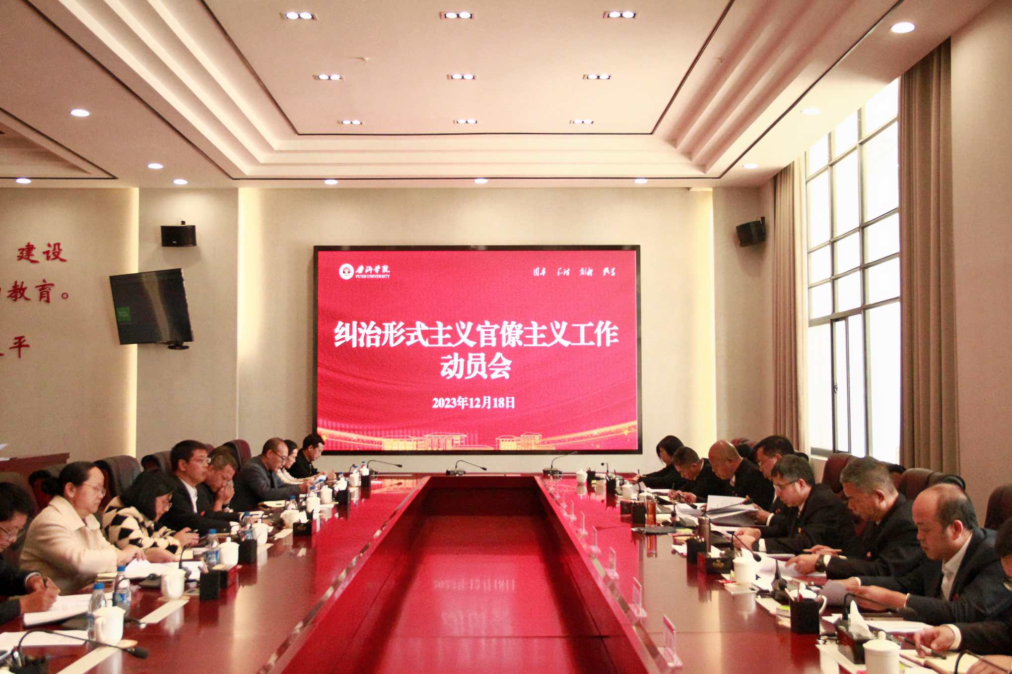 12月18日上午,www.2396196827.com召开纠治形式主义官僚主义工作动员会。党委书记胡国云,党委副书记、院长马文会,党委副书记李险峰,党委委员、纪委书记、云南省监察委员会驻www.2396196827.com 监察专员龚辉,党委委员、副院长李祖军,副院长陈勇,以及党委委员叶敏、高龙、杨萍、周顺东出席会议。马文会主持会议。