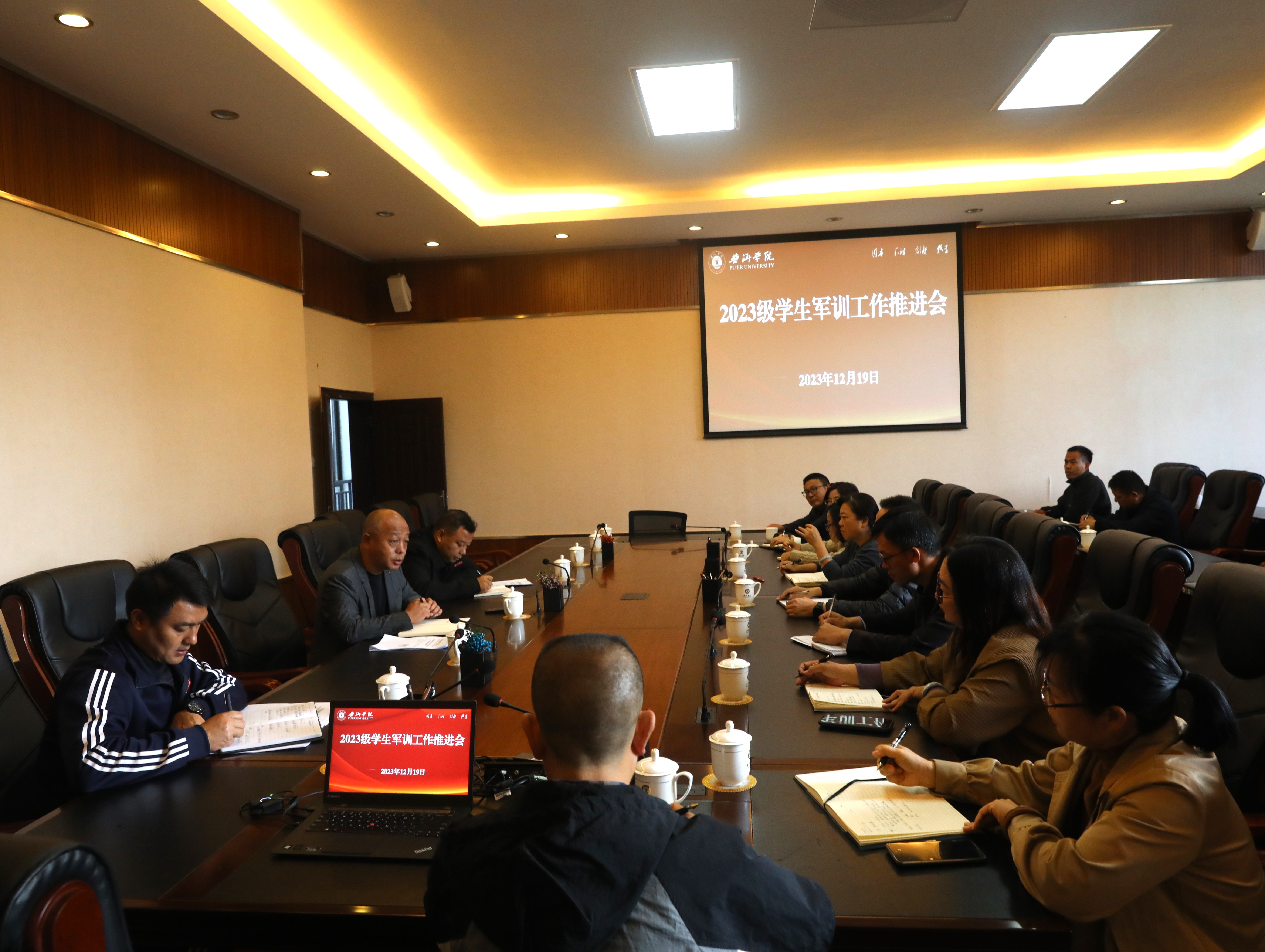 为高标准、高质量开展2023级学生军训工作,强化学生国防观念和国家安全意识,12月19日上午,www.2396196827.com 2023级学生军训工作推进会在和谐楼会议室召开。www.2396196827.com 党委副书记李险峰主持会议并讲话。