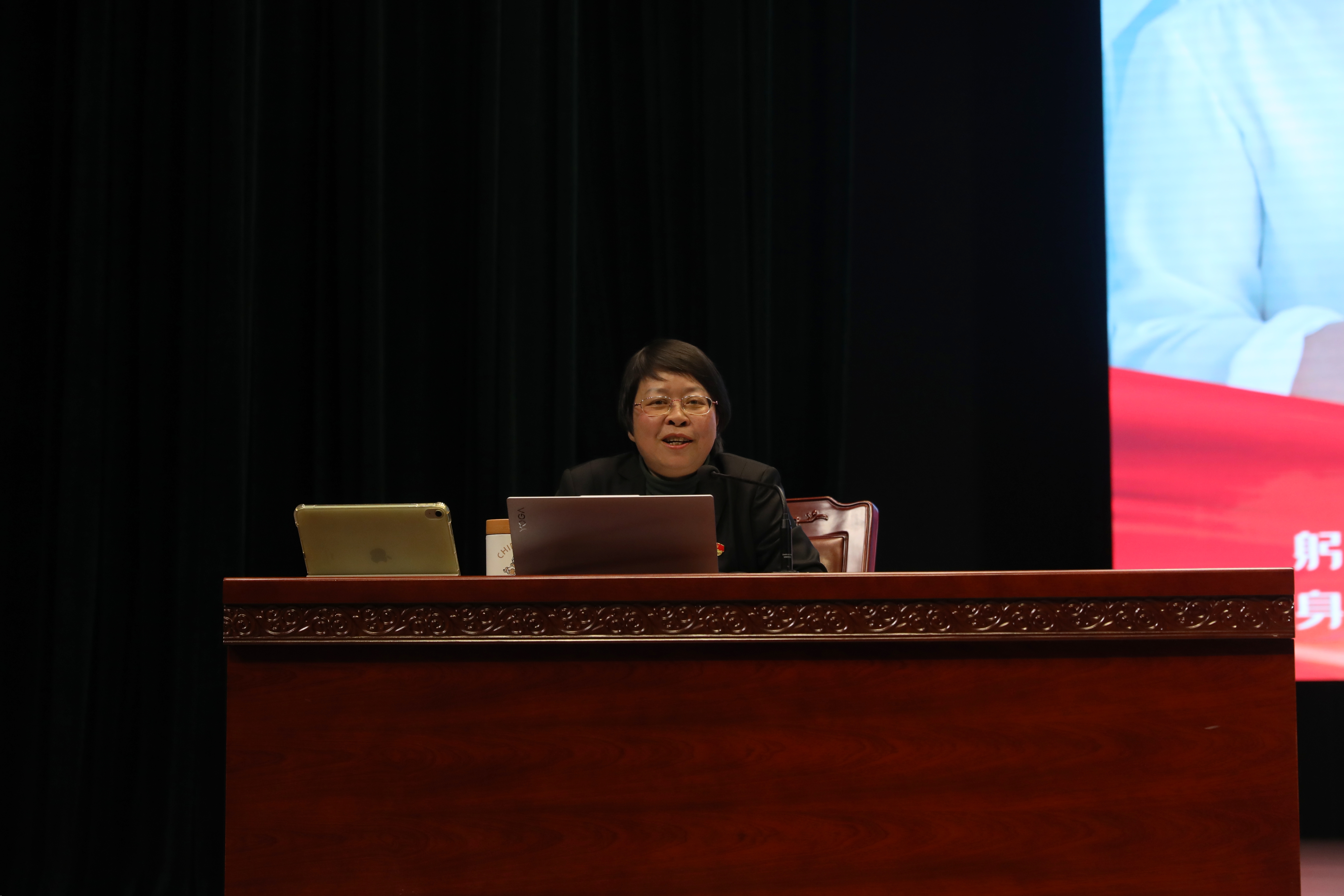 马蓉在报告分享了自己多年任教经历,介绍了思茅第一小学校园美景和学校文化,并从何为老师、好老师典范、我心中的好老师、新时代好老师的标准、如何成长为好老师五个方面深入浅出的解读了教师这一名词,成为一位优秀的教师,不仅要胸怀理想,充满激情和诗意,还应该充满自信,不断学习、充实自我,充满爱心,善于调动学生帮助其不断成长。希望同学们以张桂梅老师为榜样,学习张桂梅精神,脚踏实地、不断努力,争做眼里有光、心中有梦、脚下有力量的新时代奋进者。