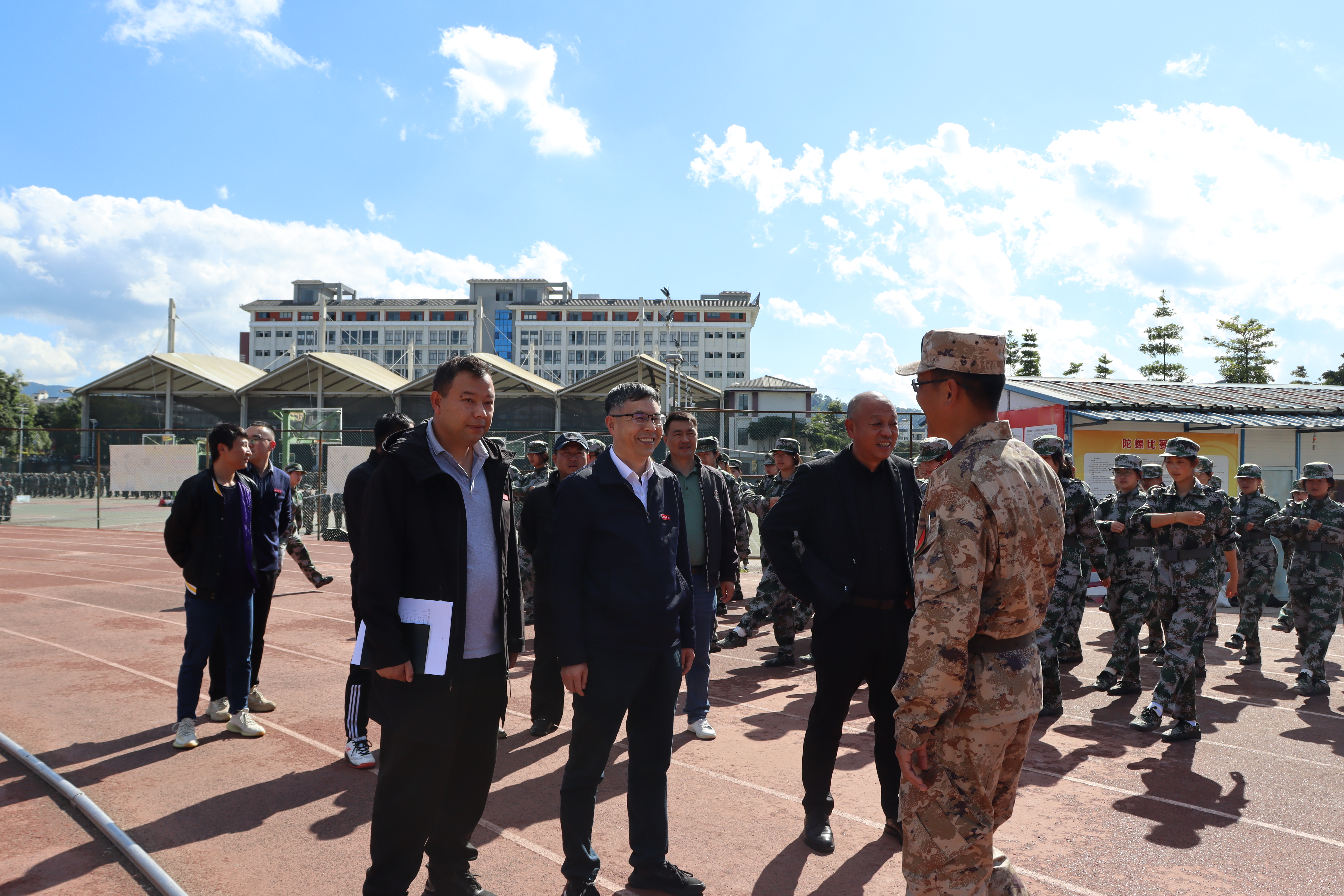 下午,调研组认真观看了训练现场,听取了军训组织情况的报告,详细了解军训工作安排及相关保障情况。马文会对承训部队长期以来协助我校开展军训工作表示衷心感谢。马文会勉励参训学生要以军人为榜样,严格训练,在军训中磨练意志,培养吃苦耐劳的精神。马文会要求相关部门做好军训各项保障工作,为教官和学生提供良好服务,在保证军训任务圆满完成的同时做好新生的思想工作、安全工作和心理健康教育工作,确保军训工作顺利完成。