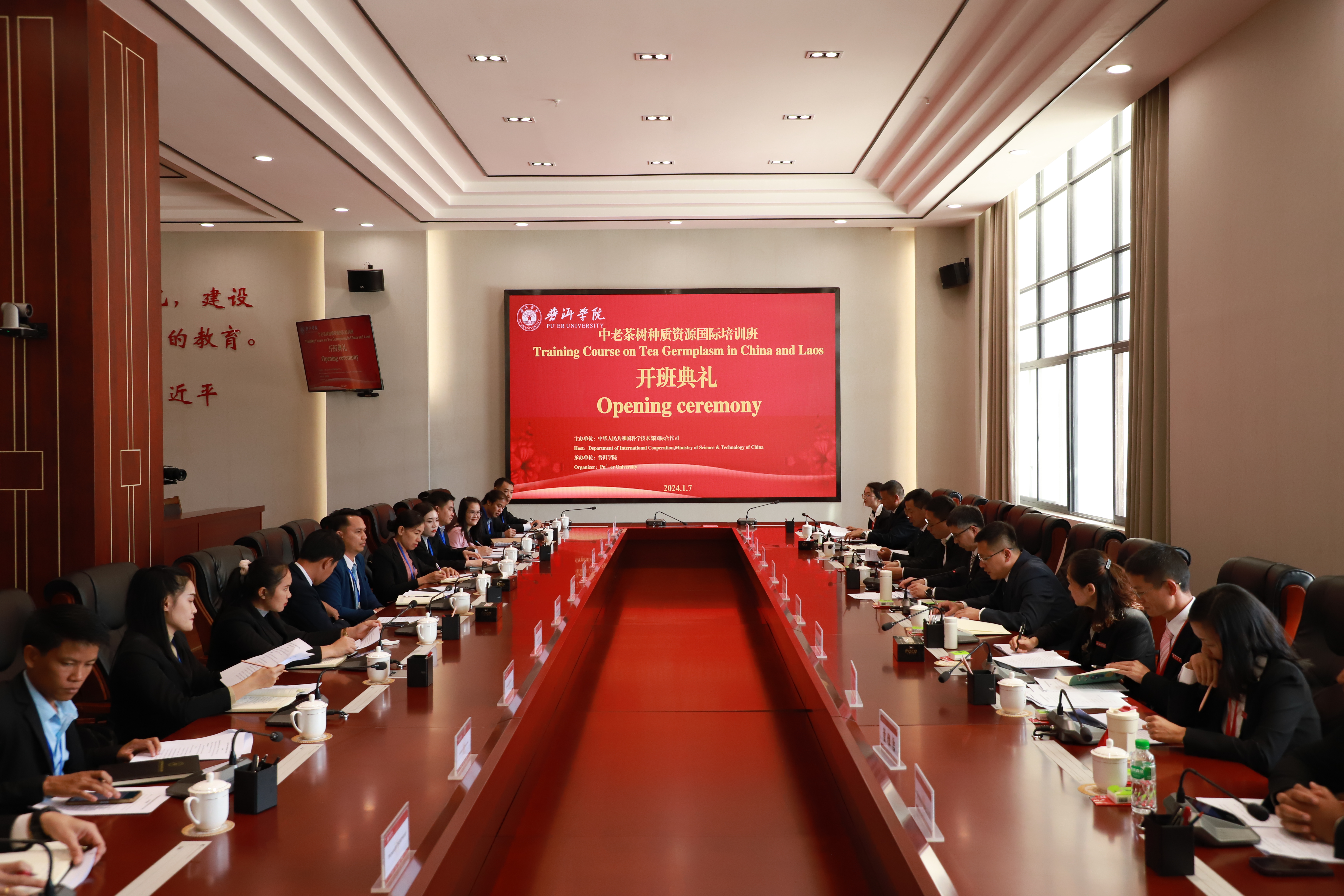 1月7日下午,中老茶树种质资源国际培训班开班典礼在www.2396196827.com 举行。www.2396196827.com 党委副书记、院长马文会出席并致辞。www.2396196827.com 党委委员、副院长田洋主持开班典礼,普洱市科技局局长严亮以及老挝学员出席开班典礼。