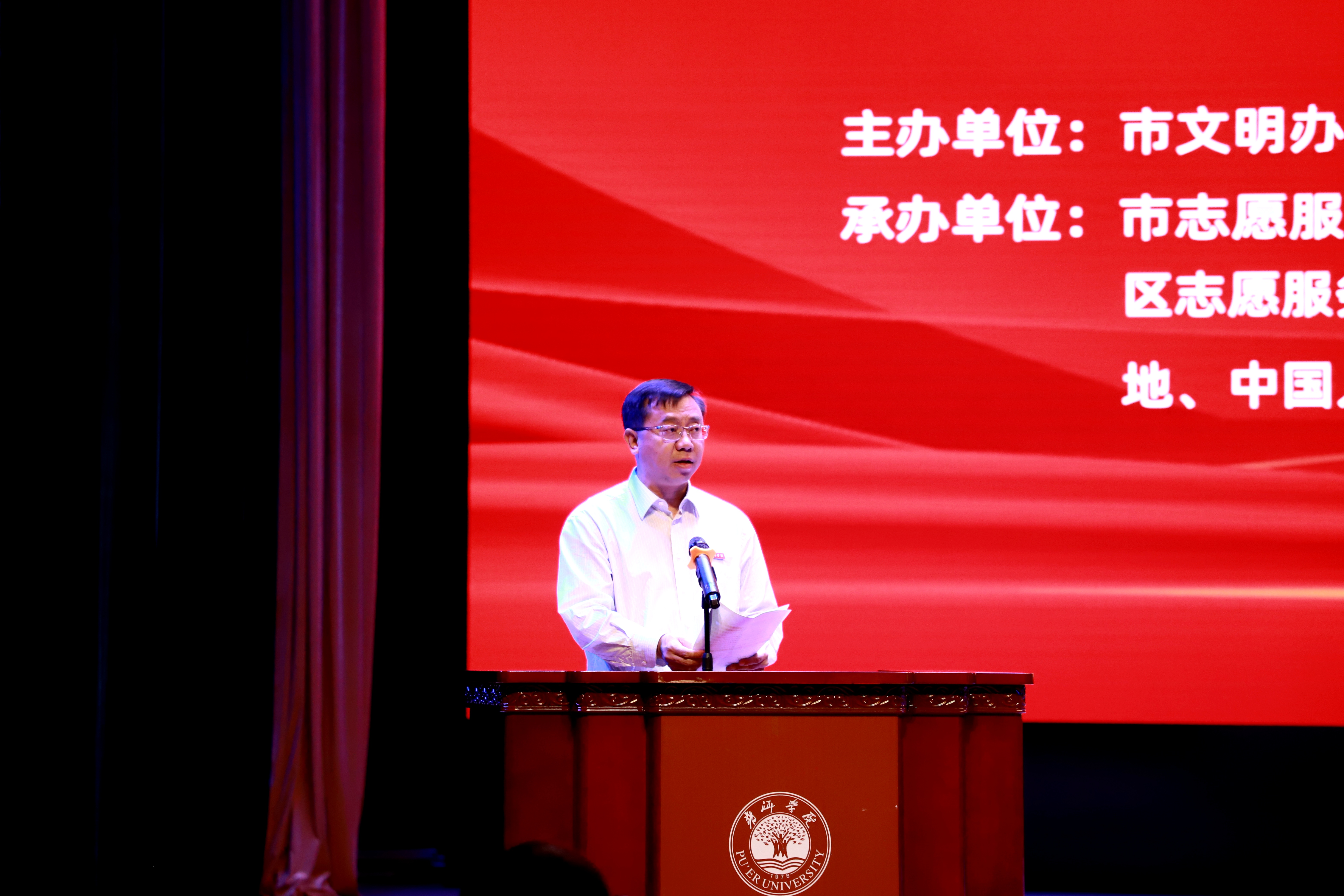 活动分三个阶段进行,第一阶段举行了普洱市专业志愿服务总队、www.2396196827.com 各志愿服务支队授旗、授牌仪式;志愿者进行了宣誓。