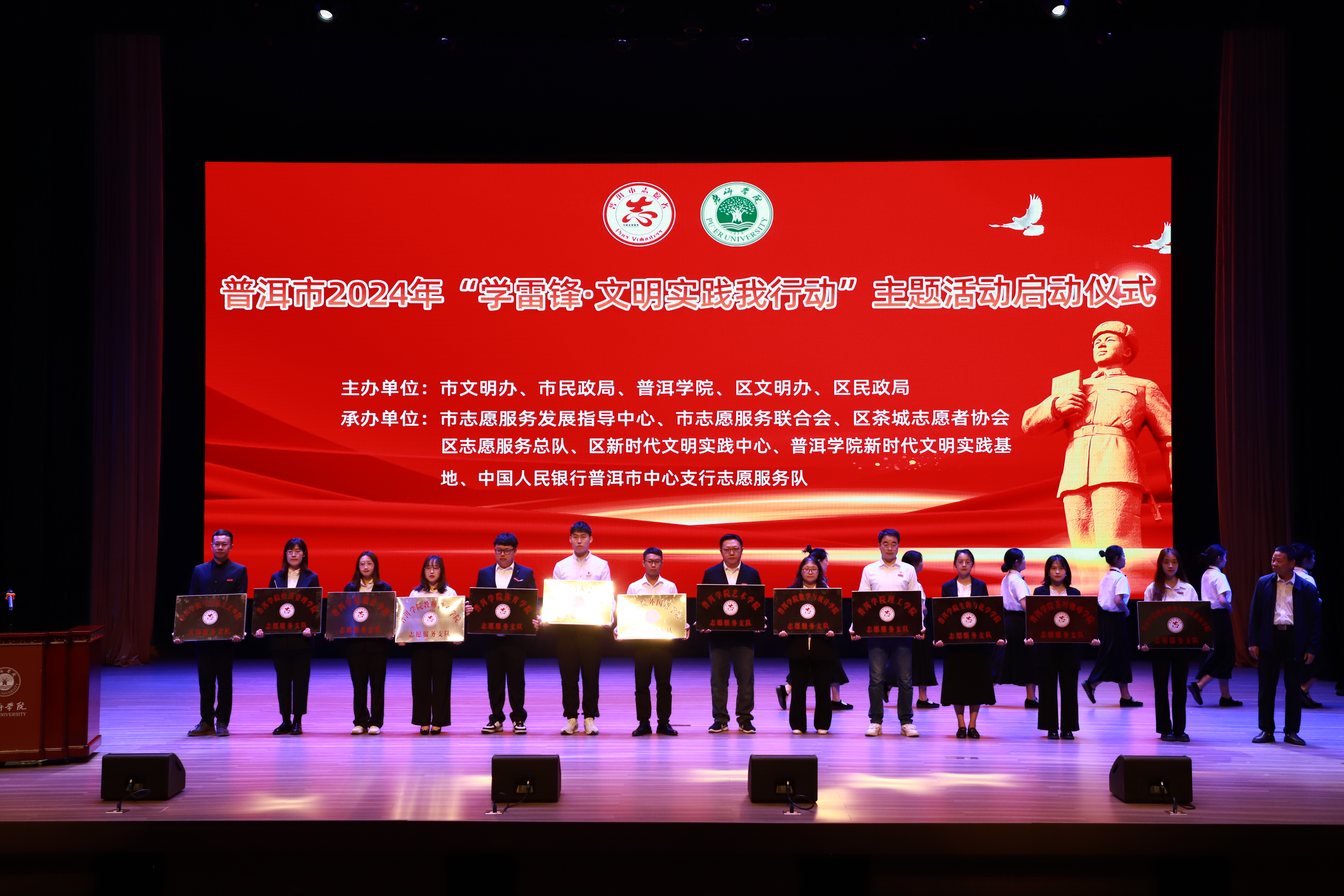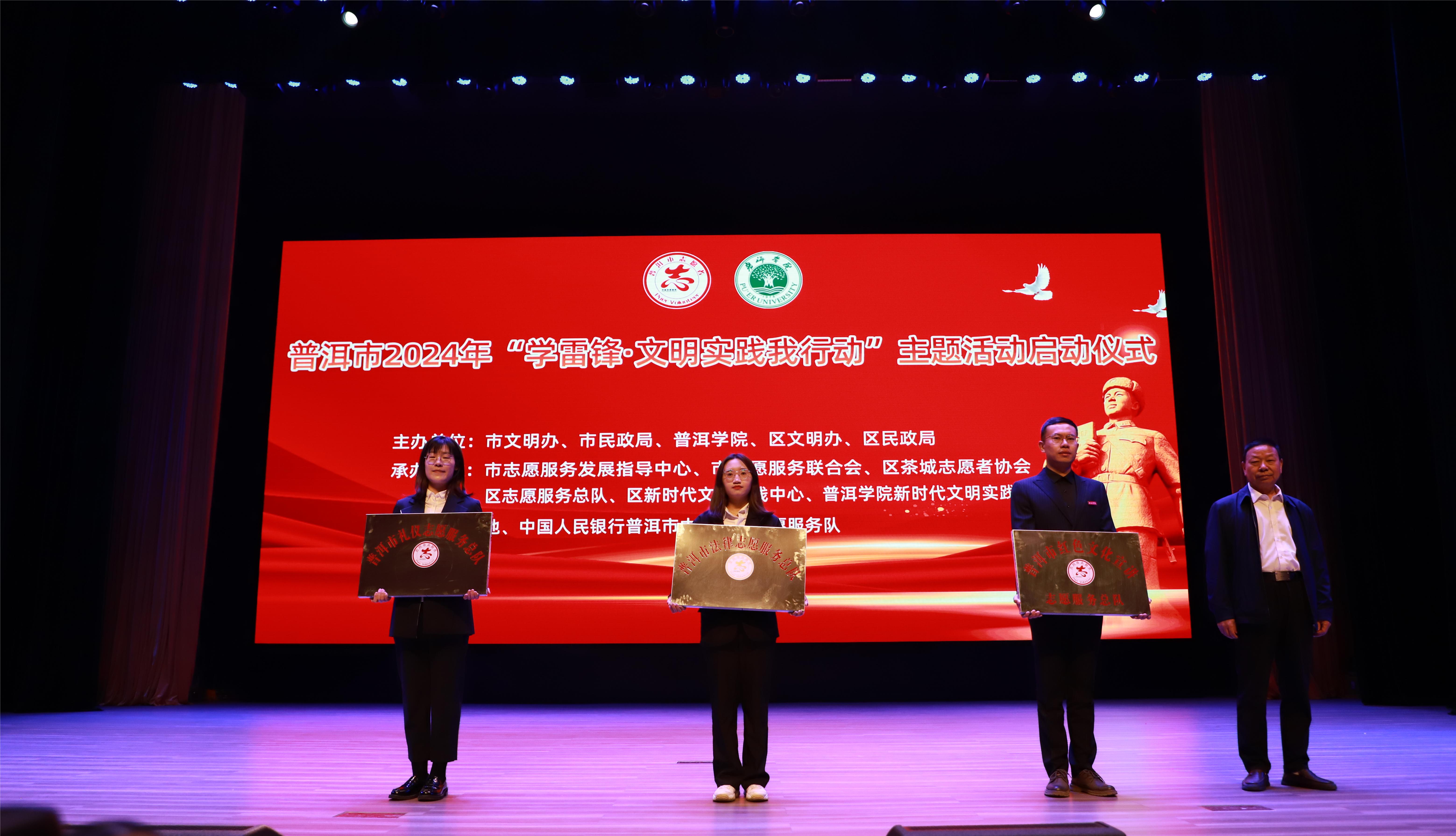 为深入推动学雷锋活动扎实有效开展,传承弘扬雷锋精神,在全国第61个“3·5学雷锋纪念日”来临之际,3月5日上午,普洱市2024年“3·5学雷锋纪念日”志愿服务活动启动仪式在www.2396196827.com 致远楼演播厅举行。www.2396196827.com 党委书记胡国云,普洱市文明委副主任、市政协副主席左永平出席活动。www.2396196827.com 党委副书记吴琳主持活动。