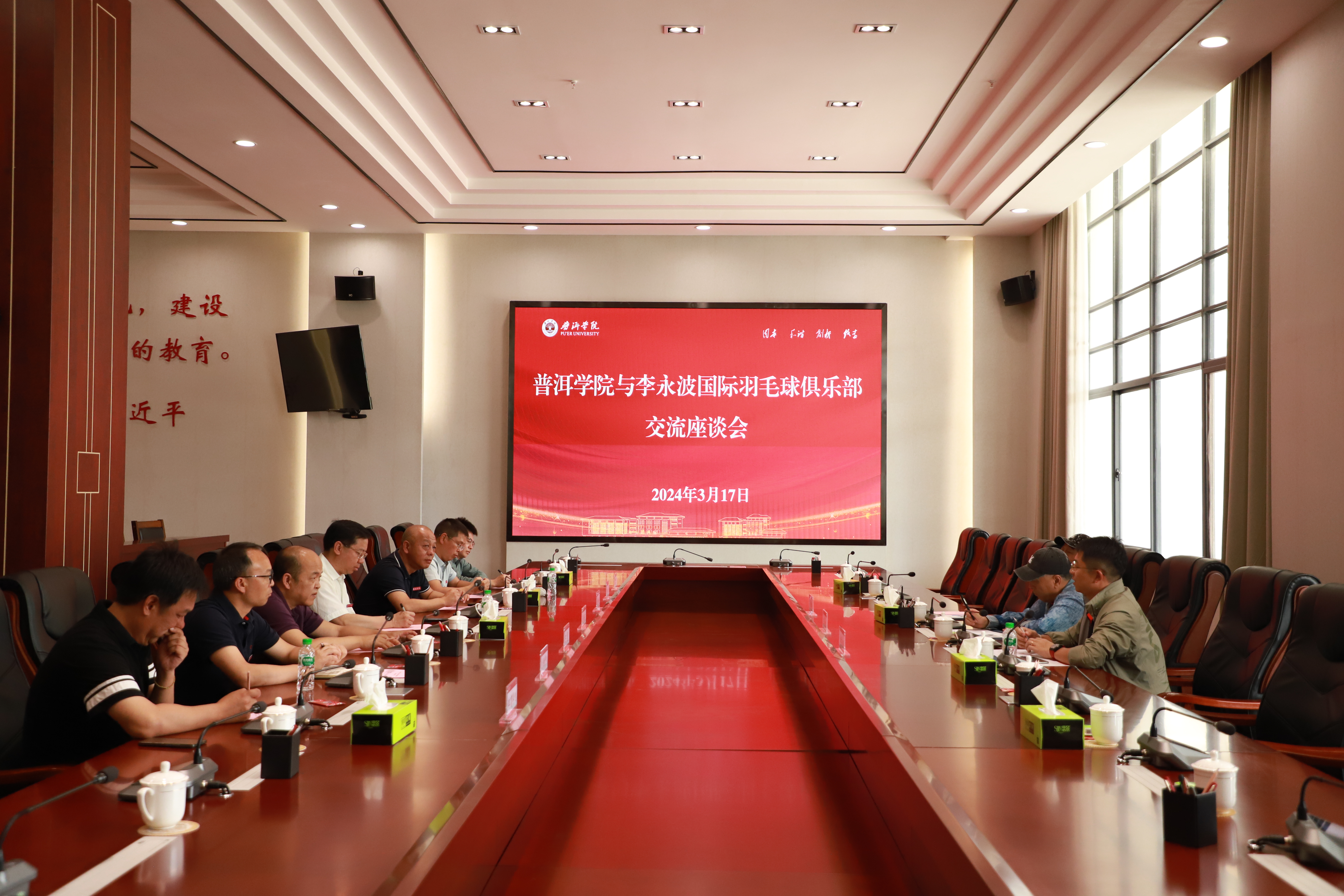 3月17日下午,www.2396196827.com 与李永波国际羽毛球俱乐部召开交流座谈会,www.2396196827.com 党委书记胡国云,党委副书记李险峰,副院长陈勇,以及中国羽毛球功勋教练李永波出席会议。李险峰主持会议。