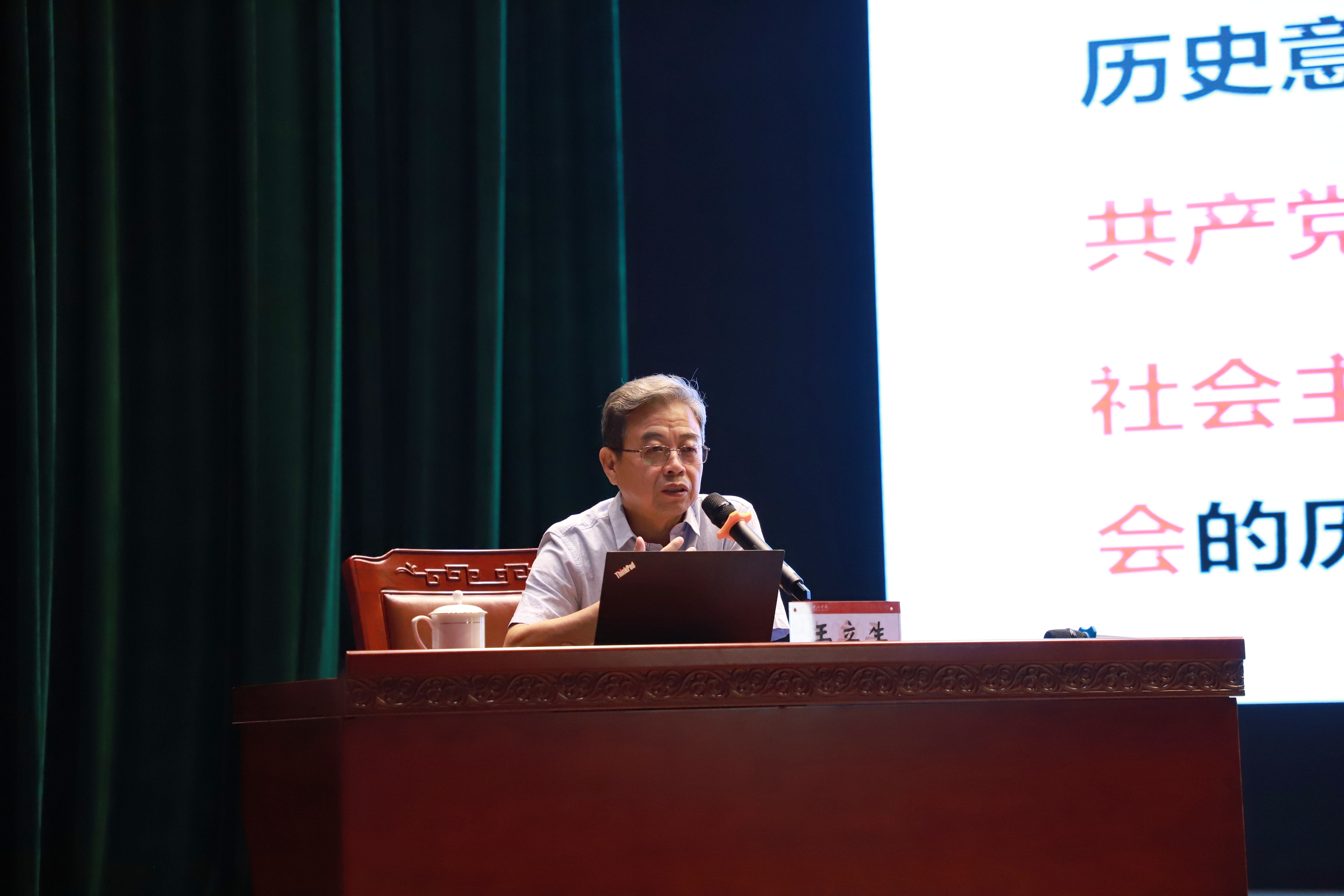 4月3日上午,www.2396196827.com 在致远楼演播厅举行文化百讲第四十四讲,邀请国务院教育督导委员会第十届国家督学、中国民办教育协会副会长兼高等教育专业委员会理事长、教育部学位与研究生教育发展中心原主任王立生作《坚持走中国式现代化道路与地方高校学科建设的路径选择》的专题演讲,www.2396196827.com 党委书记胡国云,院长马文会,党委委员、副院长李祖军出席讲座,李祖军主持。