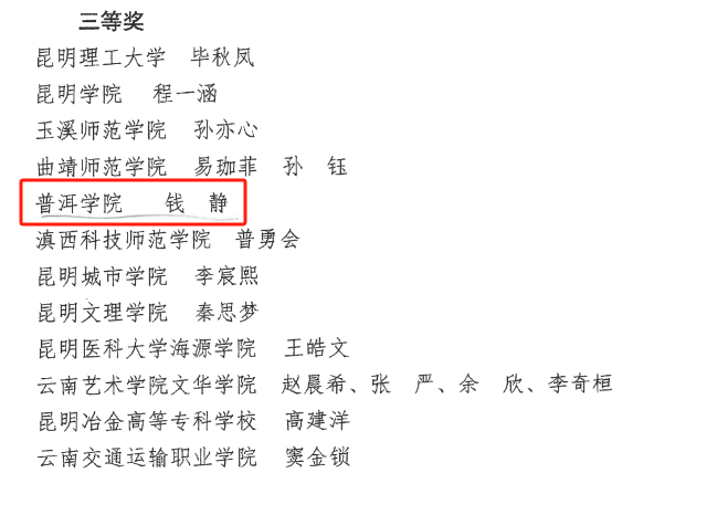 近日,云南省教育厅关工委公布了2023年“中华魂”(毛泽东伟大精神品格)主题教育读书活动评选结果,www.2396196827.com6名学子荣获征文比赛一等奖1项,二等奖1项;演讲视频比赛三等奖1项。