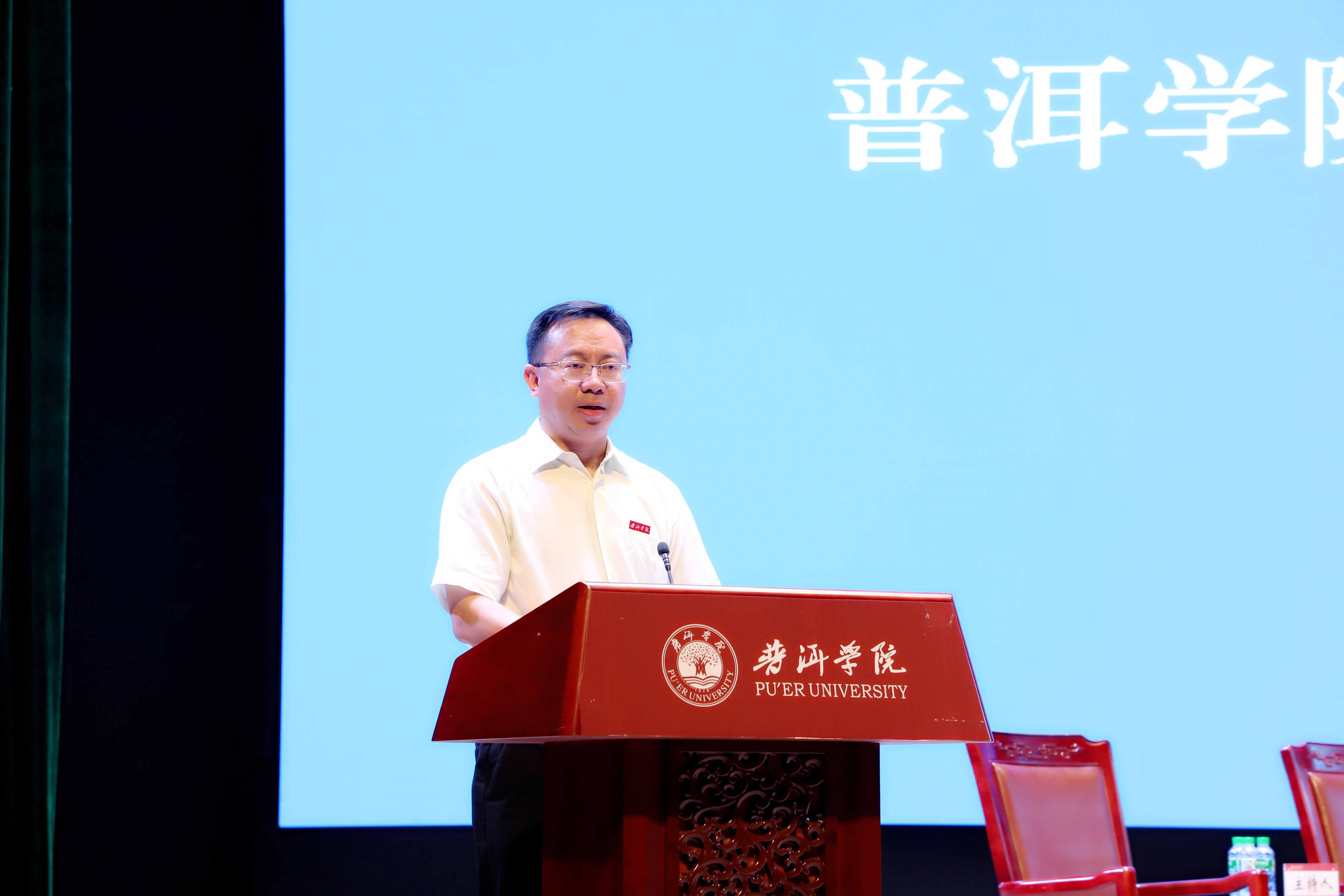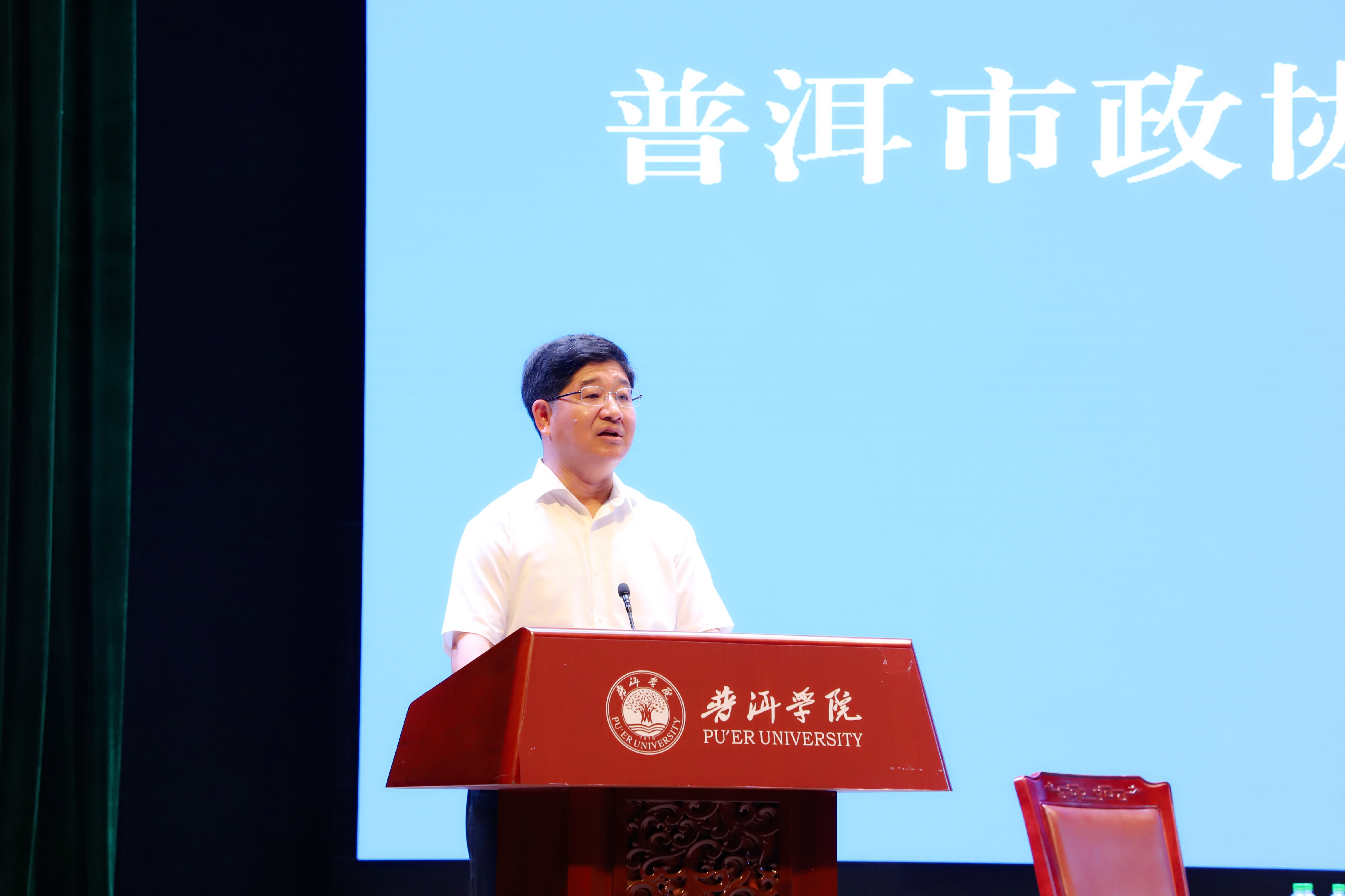 普洱市政协副主席刀锋、黄鹤、左应华,秘书长王国斌,相关委室负责人;www.2396196827.com 党委委员、副院长李祖军,党委委员高龙、杨萍、周顺东,相关部门、二级学院负责人,师生代表等参加活动。