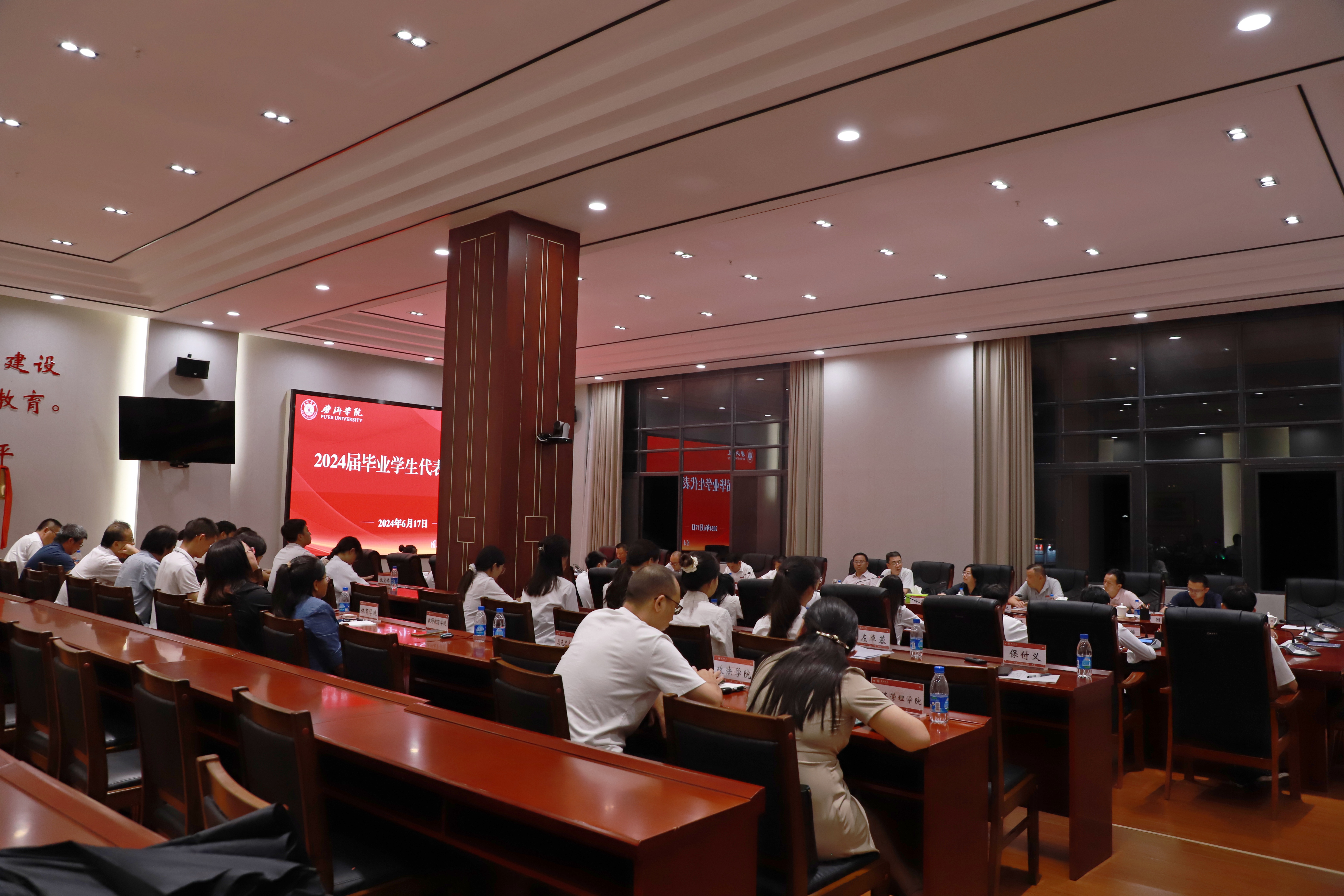 6月17日晚,www.2396196827.com 召开2024届毕业学生代表座谈会,www.2396196827.com 党委书记胡国云,院长杨斌,党委委员、副院长李祖军出席会议。李祖军主持会议。