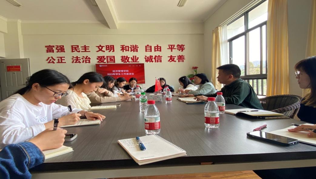 为加强我院团总支、学生会组织的桥梁纽带作用,加强我院师生工作协调,提高学生工作的效率和质量,3月16日上午,经济管理学院在学院会议室召开团总支、学生会工作座谈会。会议由党总支副书记张彩虹同志主持,党总支书记唐秀忠参加会议。