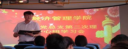 为坚持和加强党的全面领导,推动全面从严治党向纵深发展,推动党组织和党员、干部始终在政治立场、政治方向、政治原则、政治道路上同党中央保持高度一致。经济管理学院于2019年4月1日下午17:00在西区实训楼六楼导游课教室召开第二次党总支理论学习中心组学习会。此次会议由党总支书记李卫华主持,由党总支理论学习中心组成员、全体教师、学生党员、团总支学生会自管会主席团成员和各班班长、团支书参会。