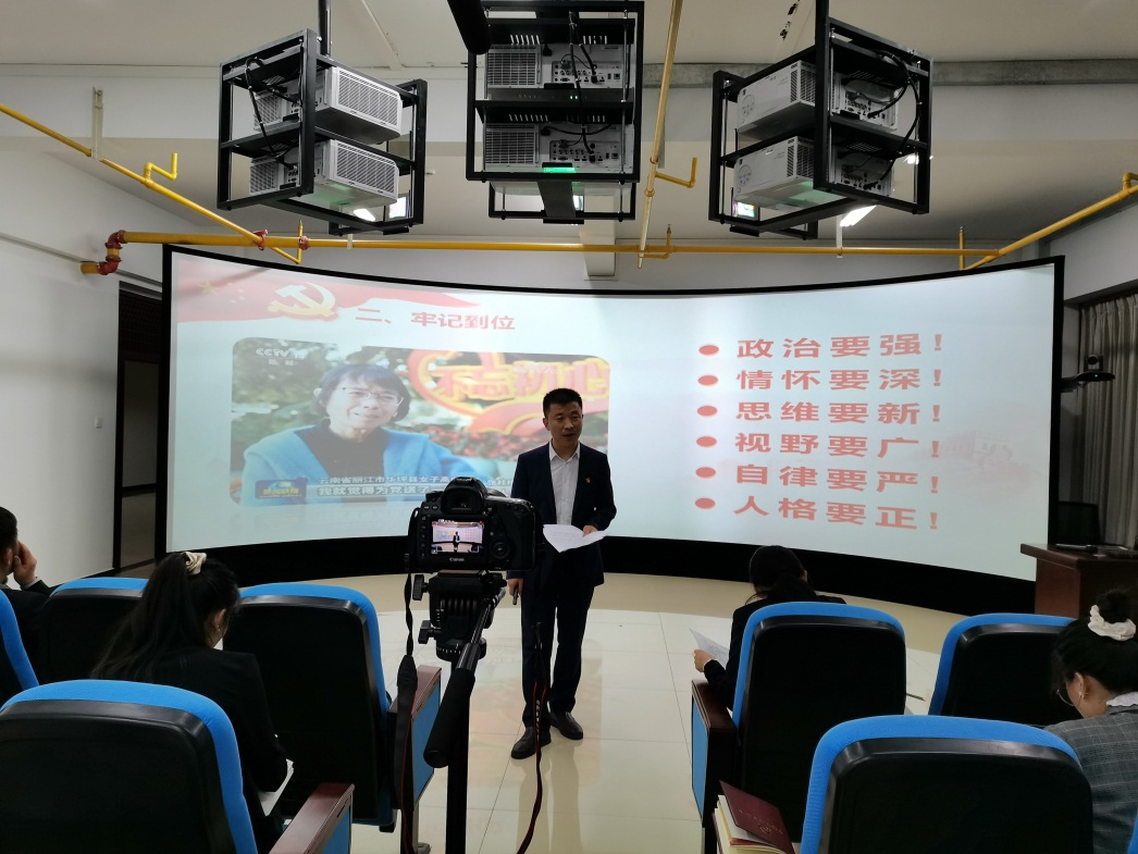 2020102819:00,经济管理学院党总支组织开展学习张桂梅同志先进事迹的“守初心、担使命”专题党课,党总支书记唐秀忠同志以“提高站位守初心、立足本职担使命”为主题,为学院全体师生党员上了一堂主题鲜明、内容丰富的党课。