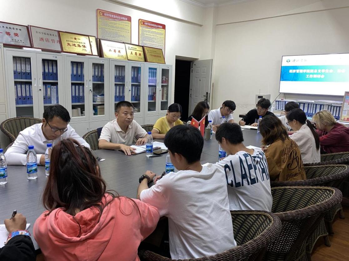 2022年9月12日晚,经济管理学院党总支书记唐秀忠对学院共青团工作开展调研指导工作,经济管理学院团总支书记刘志军、张彩虹老师参与调研。