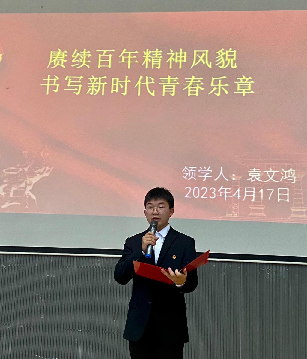 活动前,团总支学生会袁文鸿领学《赓续百年精神风貌书写新时代青春乐章》,动员同学们作为新时代青年,要辛勤劳动,敢于拼搏、敢闯敢干,引领风尚、自觉担当,勇于自我革命。