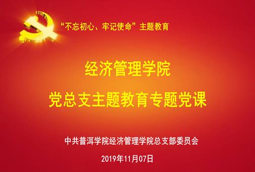 根据省委“不忘初心、牢记使命”主题教育领导小组总体工作部署,按照《www.2396196827.com 开展“不忘初心、牢记使命”主题教育工作方案》、《www.2396196827.com 经济管理学院处级领导班子和领导干部开展“不忘初心、牢记使命”主题教育工作方案》、《www.2396196827.com 经济管理学院处级领导干部开展“不忘初心、牢记使命”主题教育调查研究总体方案》的安排部署,2019年11月7日下午,www.2396196827.com 经济管理学院开展“不忘初心、牢记使命”主题教育专题党课学习会,会议由总支委员段朋飞同志主持,会上有唐秀忠同志讲党课、尹爱军同志讲党课和党课质量效果评价三项议程,我院全体师生党员参加了此次专题党课学习会
