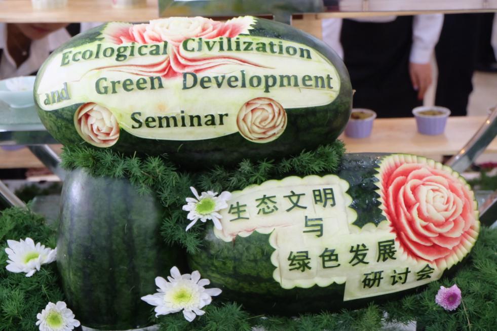经管学院全体师生党员辅助宫润华大师工作室面点兴趣小组圆满完成了普洱生态文明与绿色发展研讨会茶歇工作。茶歇主题紧扣生态文明与绿色发展话题,以食物雕刻与冷拼和国内外特色面点为主。