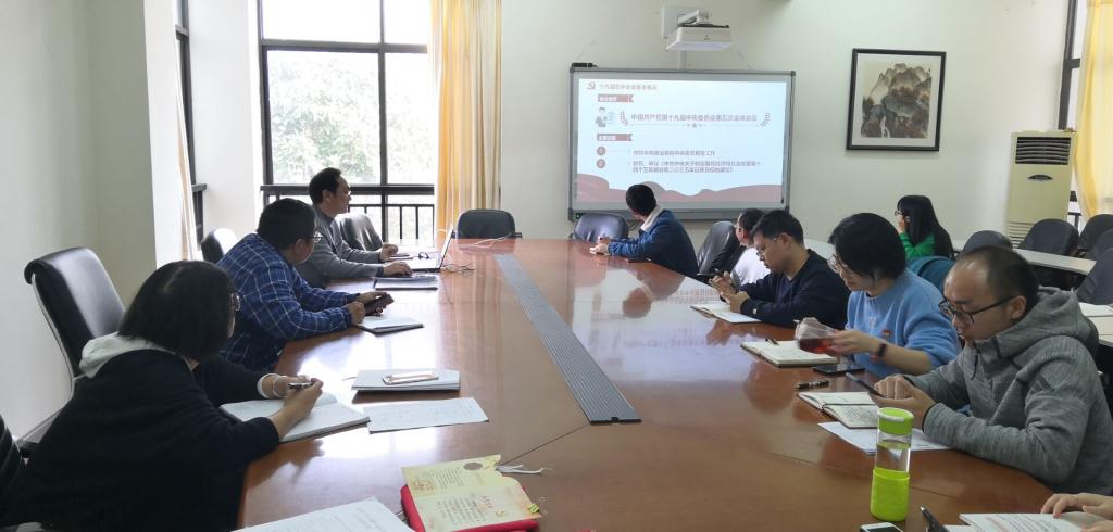 2020年12月18日上午,机关第五党支部在教务处会议室开展以“开启新征程,创造新伟业”学习贯彻十九届五中全会精神为专题主题党日,会上,支部书记刘兴元同志介绍十九届五中全会基本概况,重点解读会议审议通过《中共中央关于制定国民经济和社会发展第十四个五年规划和2035年远景目标的建议》以及十九届五中全会会议精神。在座党员同志交流谈论学习心得。