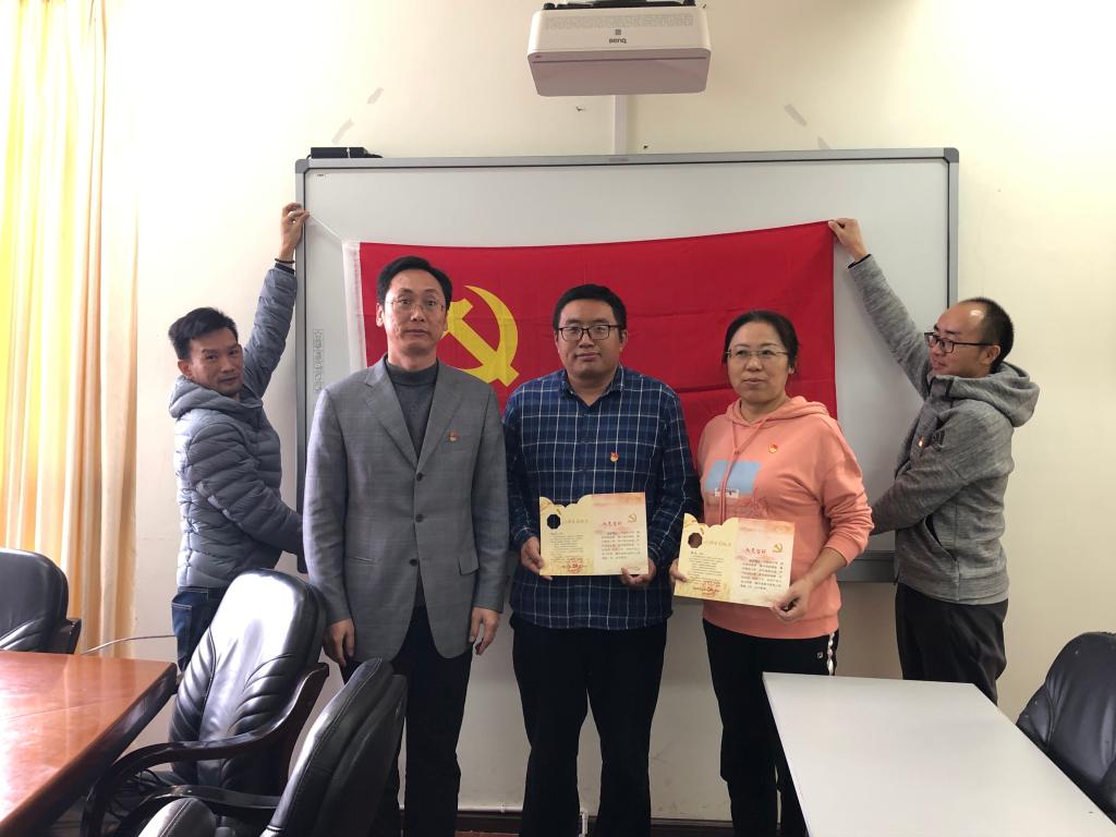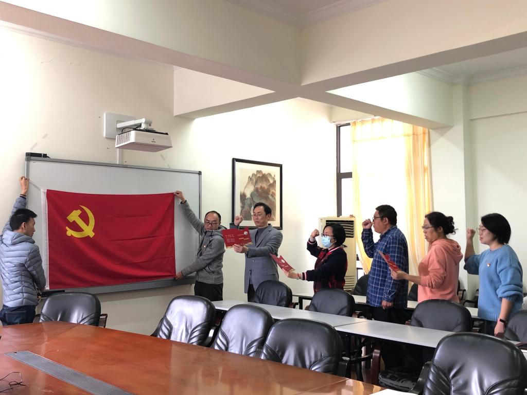 会上,支部为李娅玲、单治国、尹琳珊、谭红同志过政治生日,全体党员,重温入党誓词。