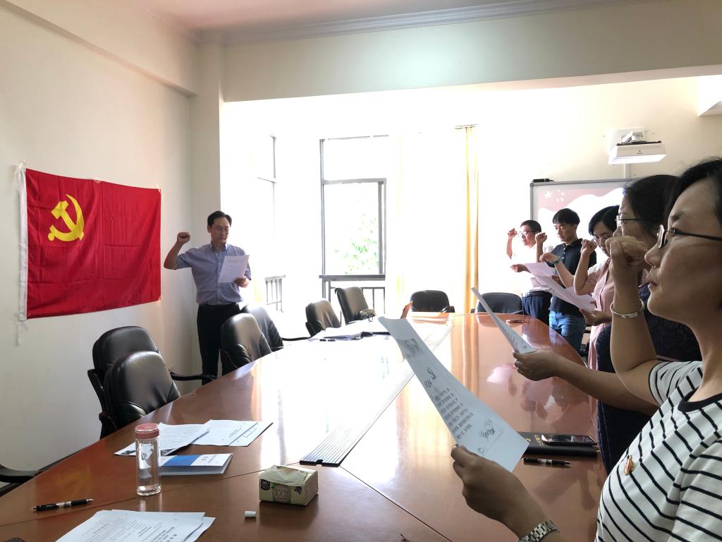 2021年5月17日下午,机关第五党支部在教务处会议室开展“学党史,颂党恩,跟党走”主题党日,会上,支部书记刘兴元同志带领全体党员同志重温入党誓词,然后以“学党史,颂党恩,跟党走”为题讲党课,回顾中国共产党的百年历程;在遵照《中共www.2396196827.com 委员会关于开展党史学习教育的实施方案》的基础上,支部结合实际,安排党史学习教育计划及学习形式;学习《云南省教育系统宗教知识读本》精神。会后在座党员同志交流讨论学习心得。