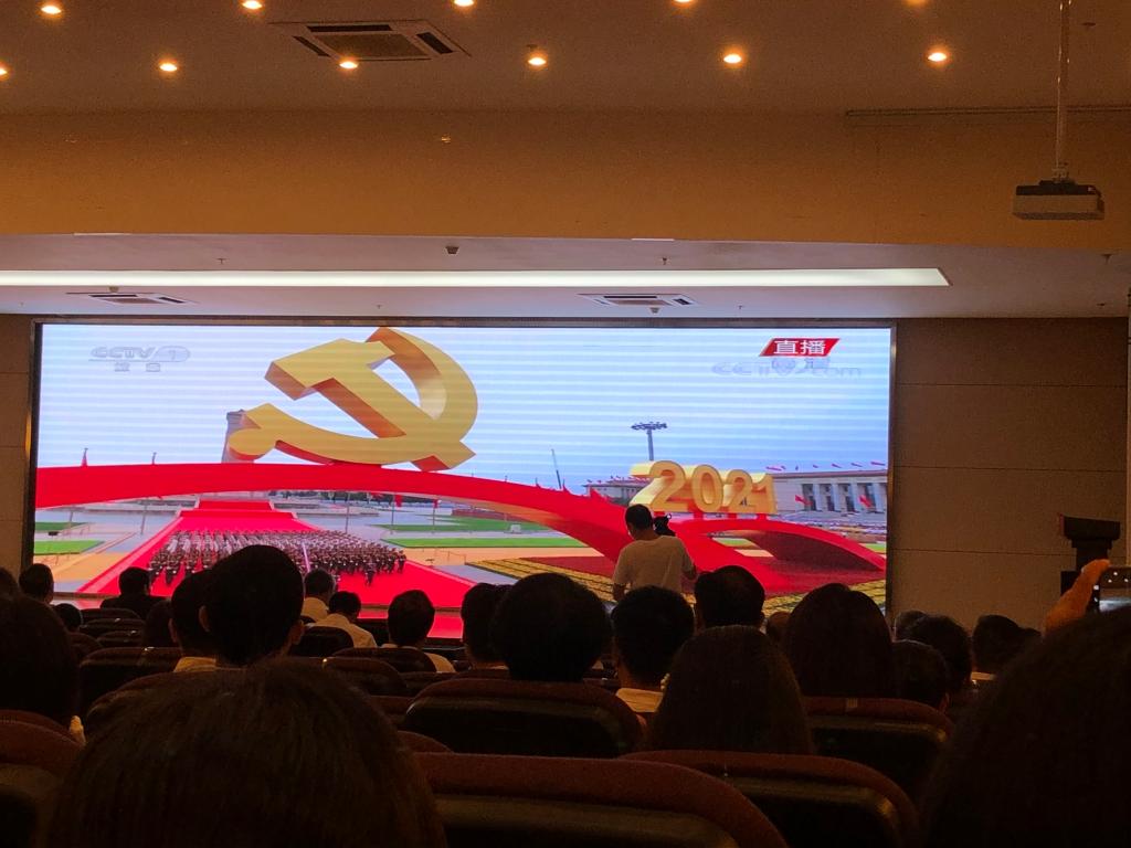 2021年7月1日上午8点,第五支部党员教师集体在图书馆收听收看了党中央庆祝中国共产党成立100周年大会,会后,党员又集中到教务处会议室进行学习讨论交流,学习交流庆祝建党百年习近平总书记在大会上的重要讲话精神。习近平总书记重要讲话深情回望中国共产党团结带领中国人民开辟伟大道路、创造伟大事业、取得伟大成就,深刻揭示中国共产党的精神之源和政治品格,坚定表明前进征程上不断创造新的历史伟业、争取更大光荣的决心和信心。习近平总书记重要讲话引发亿万中华儿女的强烈共鸣,激励和鼓舞全党全军全国各族人民继往开来、奋勇前进。在座党员纷纷踊跃发言,从时代的责任和自身工作职责出发,坚定党员信念,不忘初心,继续发扬党员的优良传统作风。