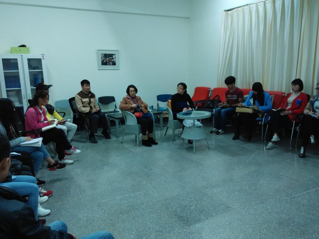 为确保学院即将开展的民主生活会顺利进行,提高会议质量,2016年1月5日晚19时,我院组织14级学生代表召开2015-2016学年上学期教学意见座谈会,除学生代表外,学院领导史晓红书记、张丽辉院长、教师何等红、李新坚也参加了此次座谈会。会上学生代表们积极发言,就本院教学工作、学生管理等方面提出了意见和建议。