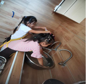 总体而言,我们班级在就餐时都能做到井然有序,安静就餐。而在餐后老师们会安排轻松安静的活动如室内游戏、散步。这时教师会把特别调皮的孩子拉在自己身边,带孩子到教室外面四处走走熟悉幼儿园每个地方。