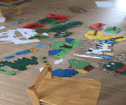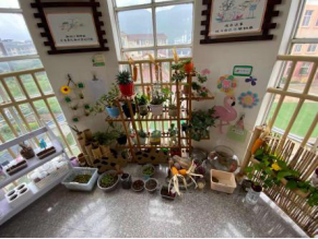 幼儿园环境是幼儿园课程的一部分,幼儿园环境创设应与幼儿身心发展的特点和发展需要相适宜。每个班级环创主题不一样,有些主要是以“森系为主”,班任教师给出主题,我们负责细节的布置。怎样设计出好的造型、好的图案;如何突出每个区角的特色、怎样把石头、松果之类的物品固定到墙面上等。针对这些问题,我们选择了网络搜寻和询问班上老师两种方式,班上老师都是有问必答且很耐心的给出意见或建议。终于在一周内完成了环境创设这一大难题。也让我明白在环境创设的过程中,应力求使每一块墙壁都与幼儿对话,每一张图画都贴近幼儿实际,拥有教育的内涵。