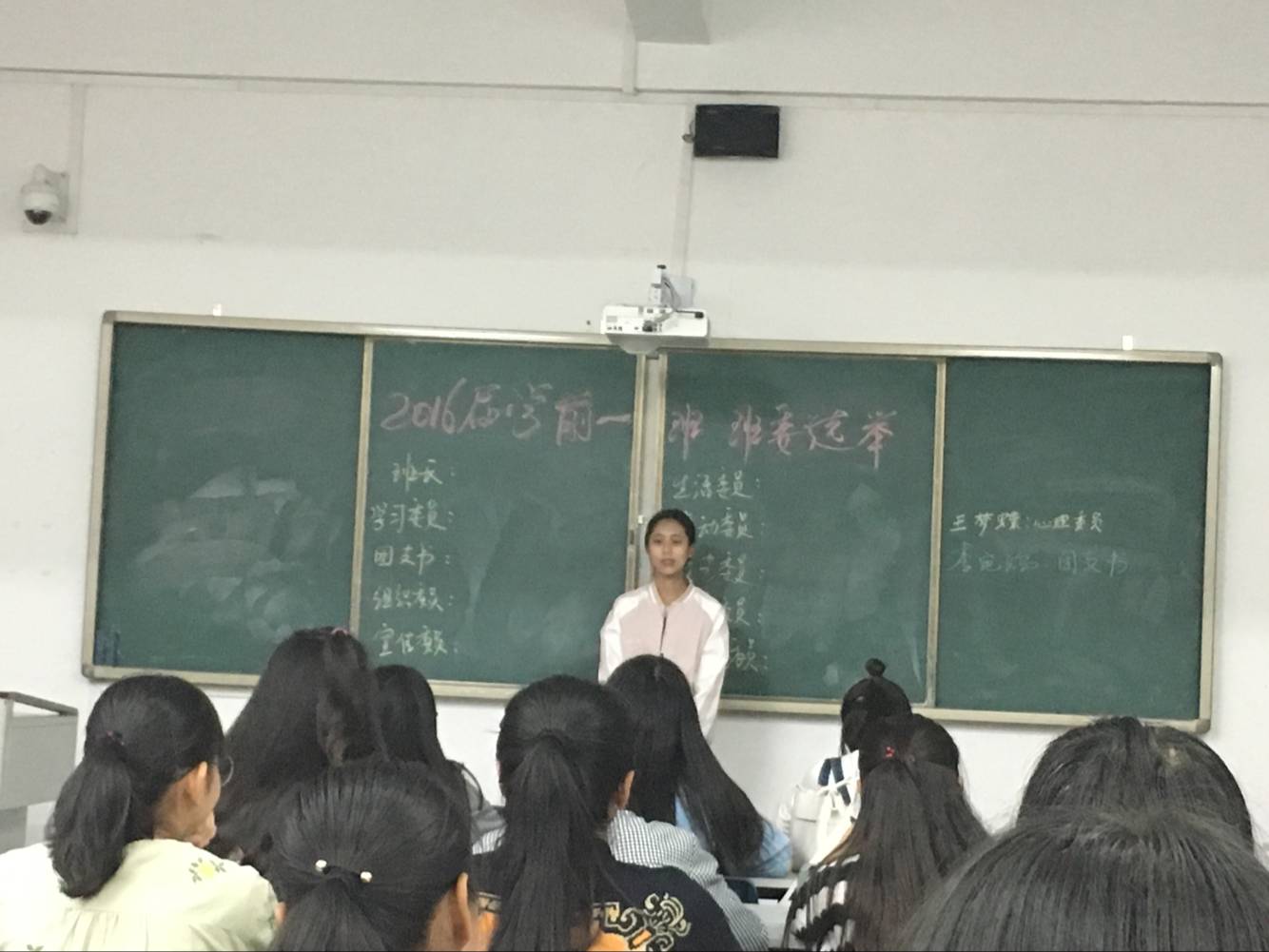 新学期的到来,同学们带着兴奋和热情又回到了我们美丽的校园。辅导员为了让我们每个人都有锻炼自己的机会,在2017年3月14号,我们迎来了我们的第一次班会“班委竞选”。并将班会地点定于敏1-206教室。前任的各位班委用她们无私的心换来其他同学锻炼的机会,而同学们也没有浪费这次机会,每位同学都热情洋溢,积极参加 ,尽她们最大努力,争取机会。而这次班会辅导员并没有参加,而是让我们自己组织,锻炼我们的组织能力,也让我们选出自己心目中认定的人选,让这次选举更加民主,更让人信服,而新的班委也会在老班委的带领下熟悉各项工作,做好班级活动,领导好这个集体。这次班委竞选,有人成功,有人失败,但结果不重要,在于过程,我们彼此更加了解团结,在辅导员精心带领下越来越好。