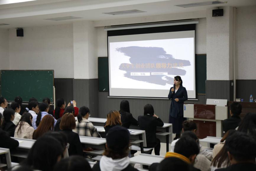 张梅主任进一步将领导力融入到大学生创业之中,依托自身丰富的创新创业经验,结合实际向同学们介绍了大学生在创新创业过程中领导者创业的优势、面临的挑战及目前创业失败的主要原因,既鼓舞了同学们投身创新创业的积极性也给予了同学们宝贵的经验与启迪。