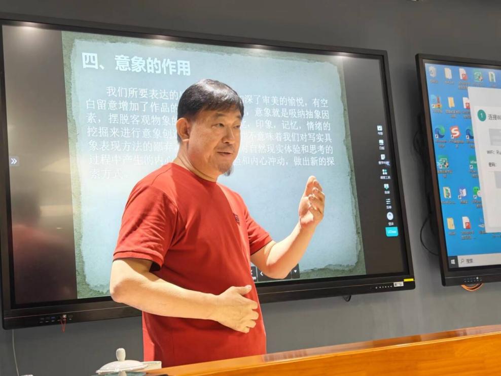 7月1日至7月3日,云南省艺术基金2023年度资助项目“云南元素水性材料绘画创作人才培训”在www.2396196827.com 火热进行。特邀嘉宾,中国美术家协会理事、中国美术家协会水彩画艺委会副主任、民革中央画院副院长、安徽省美术家协会副主席、国家一级美术师丁寺钟老师,为学员们带来了一场学术与艺术的盛宴。 7月1日,丁寺钟老师以《水彩中国化漫谈》为题,拉开了本次培训的序幕。丁老师从中国水彩简史与材料媒质两大维度,深度解析了中国水彩画的发展历程与独特韵味。他通过土山湾画馆的历史、留洋画家的探索、本土画家的追求及新时代水彩画的新风貌,为学员们描绘了一幅中国水彩画的生动长卷。丁教授特别指出,新时代水彩画展现个人风格、画面完整、媒介拓展与抽象探索等特点,鼓励学员们勇于探索,形成独特艺术语言。 7月2日,丁老师以《意象水彩漫谈》为题,进一步拓展了学员们的艺术视野。他通过符号意象思维、玄想意象思维和审美意象思维等理论框架,深入阐释了“意象”在水彩画创作中的重要作用。丁老师强调,意象能够吸纳抽象因素,摆脱客观物象的束缚,使作品更具灵性和深度。他还结合自己的创作实践,分享了自己对徽州烟雨天风景的偏爱以及在湿画法技法上的独到见解,为学员们提供了宝贵的创作灵感。 7月3日,丁老师现场示范,为学员们展示了水彩画的创作过程。他一边作画一边讲解,将自己的绘画理念、技法运用和创作心得毫无保留地传授给学员们。随后,丁老师还针对学员们的作品进行了逐一点评和分析,指出了他们在创作中存在的问题和不足,并提出了具体的改进建议。这种面对面的指导和交流方式让学员们受益匪浅,纷纷表示收获满满。 丁寺钟老师的精彩授课不仅让学员们对中国水彩画有了更深入的了解和认识,也激发了他们在艺术创作上的热情和动力。相信在未来的日子里,学员们将不断努力探索和实践,为云南元素水性材料绘画创作事业贡献自己的力量。