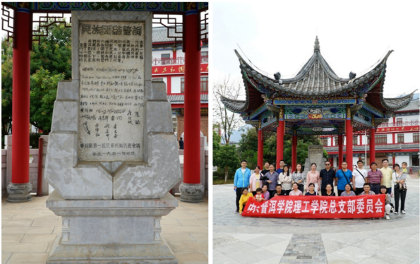 习近平总书记说过:"各民族要像石榴子那样紧紧抱在一起"。随后理工学院全体党员教师参观了民族团结誓词碑。70年前,普洱专区第一届兄弟民族代表会议上,26个民族的部分头人代表及党政军代表47人,用傣、拉祜、汉文书写签名,喝咒水齐发誓,团结一心跟着共产党走的故事历历在目。民族团结誓词碑象征着新中国成立后,边疆各族在中国共产党的领导下,一个崭新的社会主义民族关系的开始,是全国各民族大团结最好的印证。
