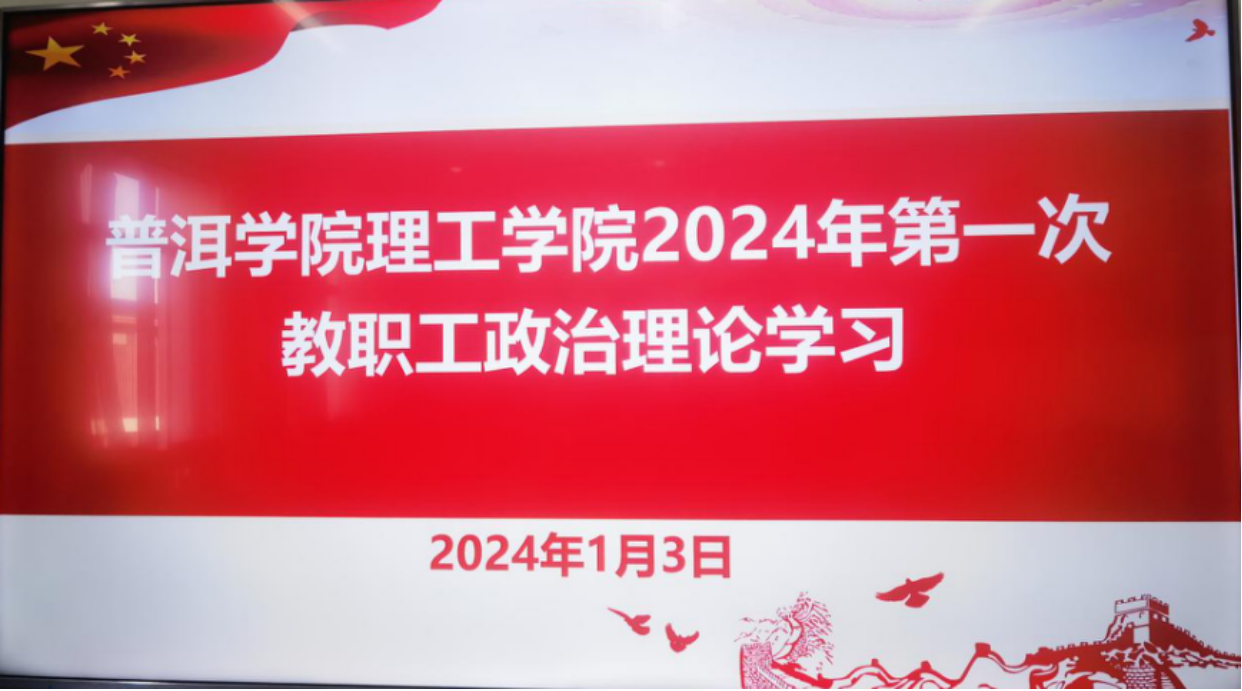 为深入推进学习贯彻习近平新时代中国特色社会主义思想主题教育落实落细,进一步加强政治理论学习,提升全体教职员工思想政治素养。2024年1月3日15:00,理工学院组织全体教职工在理工学院会议室开展第一次政治理论学习,会议由理工学院党总支书记唐秀忠主持,全体教职工参加了会议。