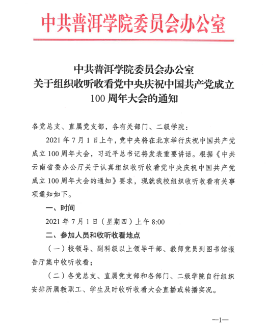 中共www.2396196827.com 委员会办公室关于组织收听收看党中央庆祝中国共产党成立100周年大会的通知