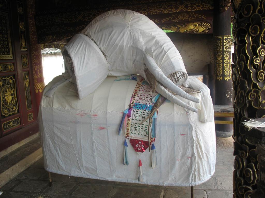 (可以重复使用的白象,仪式中,傣族男子可以钻进白象内跳白象舞)