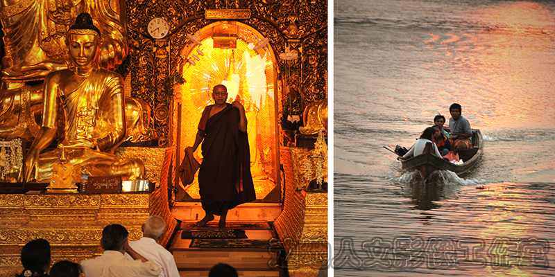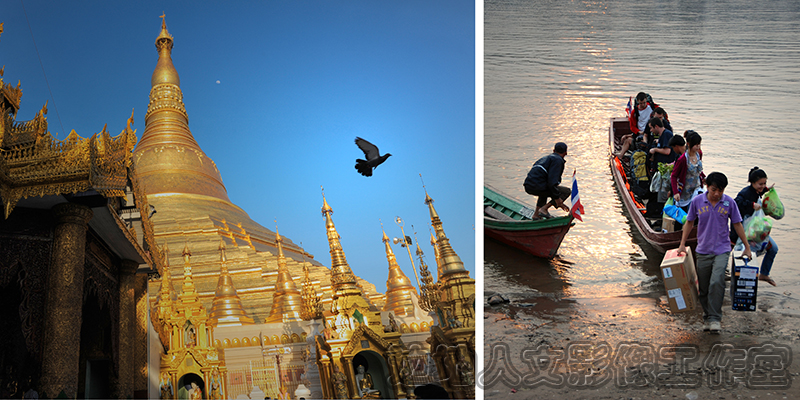 长期以来一直在寻找:湄公河流域文化背景的核心是什么?是热带气候?是美丽而神秘的风光?是丰富多彩的民族风情?是佛教.......?忽然有一天发现在这条神秘的大河上泛着金色的光芒,照耀着两岸的天空和景物,同时也照耀着两岸人民的精神与内心,在金色的环绕中两岸人民实现了世界和精神的融合。(金色不仅代表财富,更象征庄严、神圣和辉煌。)