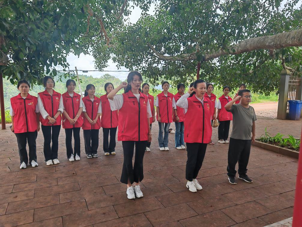 在关山大榕树红色基地,实践团党员教师在当地党员同志带领进行了入党宣誓,老师们整齐地站在鲜艳的党旗下,举起右拳,庄严宣誓。他们的声音洪亮而坚定,眼神中透露出对党的忠诚和信仰的执着。在这充满红色记忆的基地里,每一个角落都仿佛在诉说着革命先辈们的英勇事迹。看到老师们的宣誓,实践团成员深刻地认识到入党不仅是一种荣誉,更是一份责任与担当。老师们用行动诠释了党员的初心和使命,也为我们树立了榜样。作为一名大学生,我们要积极向党组织靠拢,在党旗下集合,向革命先烈学习,努力学习科学文化知识,积极投身社会实践。传承红色基因,坚定理想信念,将来为祖国的建设添砖加瓦,为实现中华民族伟大复兴的中国梦贡献自己的力量。