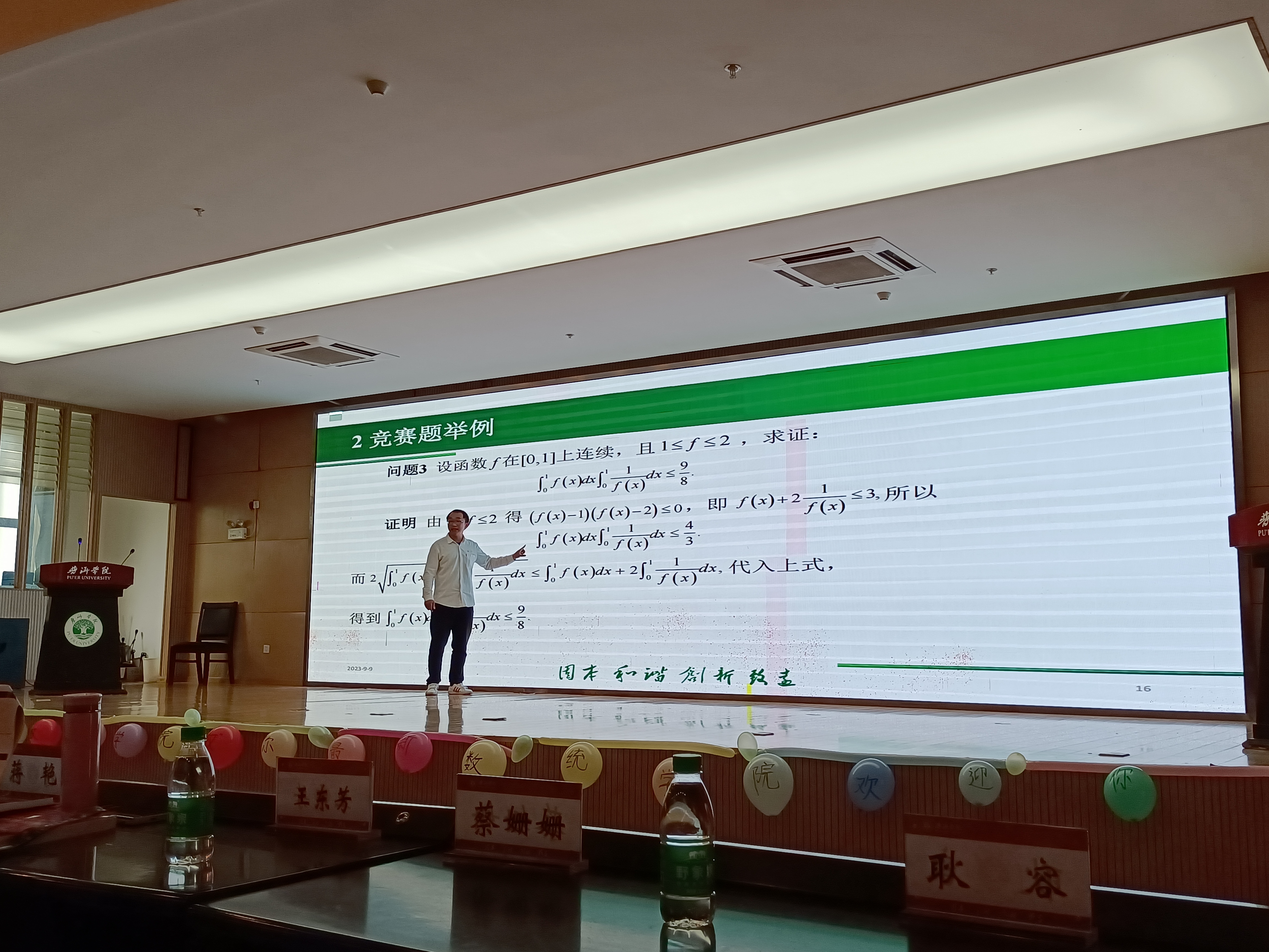 数学与统计学院2022级数据科学与大数据技术专业(专升本)的李彬同学作为学生代表,以一道关于Kantorovich不等式的数学竞赛题为例,分享其对数学竞赛的初步认识及推荐若干参考书目。