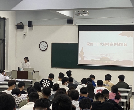 宣讲员主要以PPT的形式向同学们进行了详细的讲解,宣讲员们之间相互配合,用自己的风格向同学们多层次、多方面、有深度、有拓展的展示了党的二十大精神。宣讲过程中同学们深刻学习了大会的主题和主要成果,主题是大会的精神和灵魂,对于大家理解和把握报告,具有重要的指导意义。
