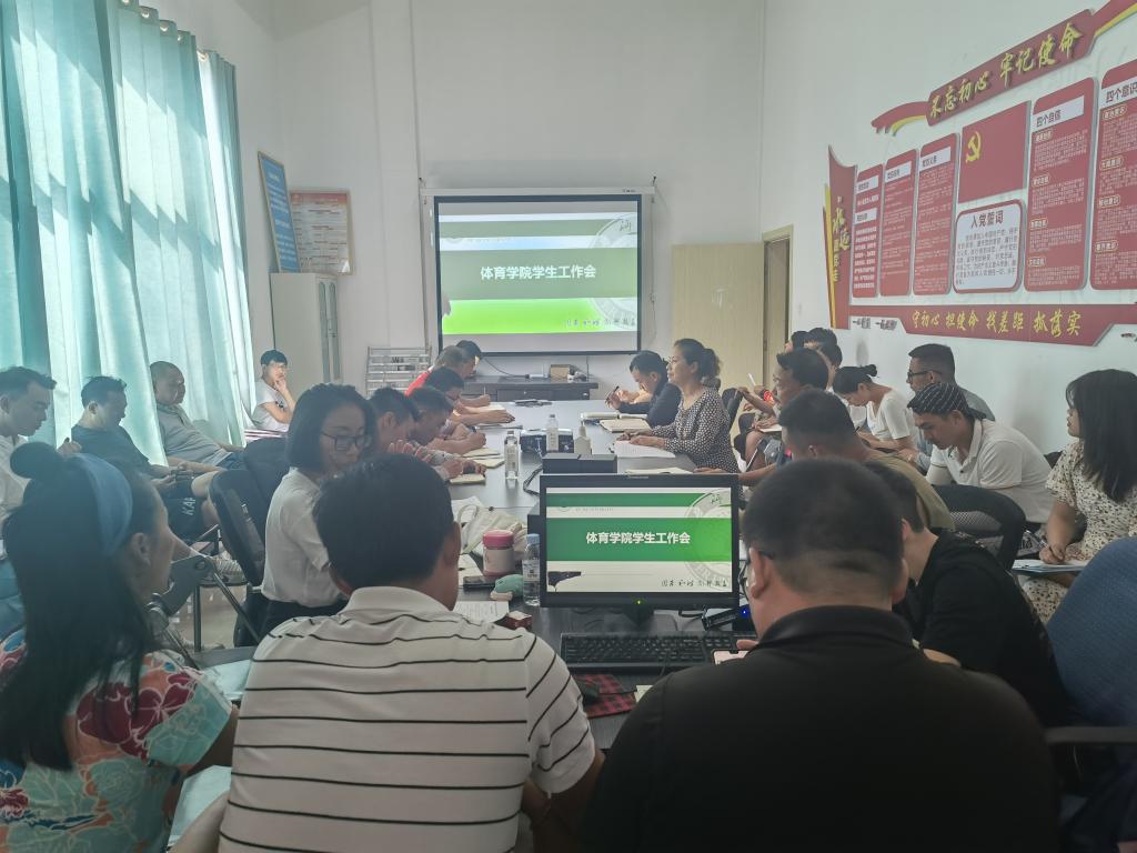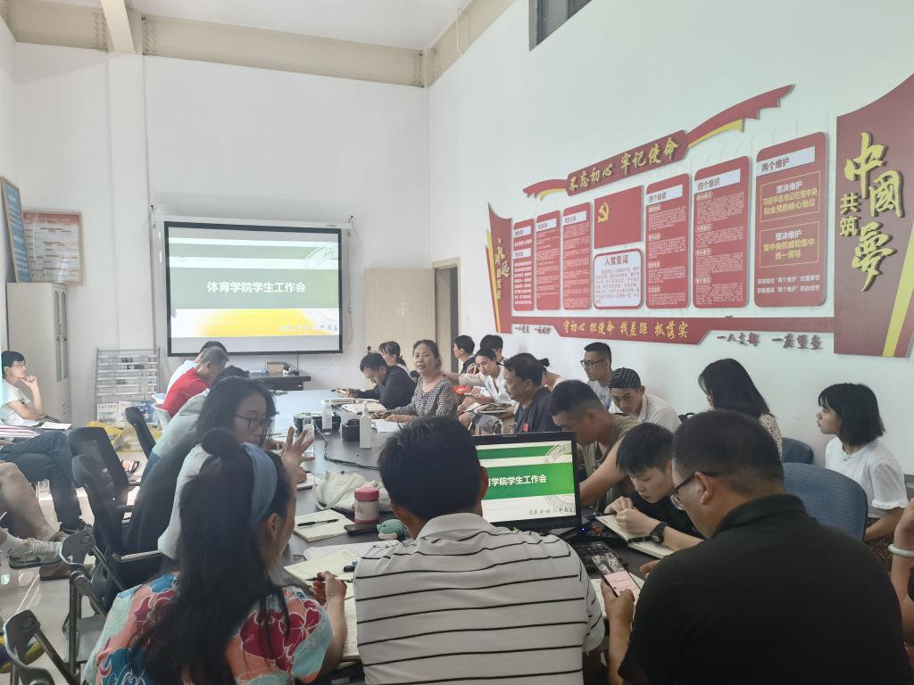 2021年6月3日上午9:00在体育学院会议室召开体育学院毕业班、辅导员工作会议,参会人员有体育学院副书记刘松老师学院专职辅导员以及毕业班班主任,会议由体育学院副书记刘松老师主持。
